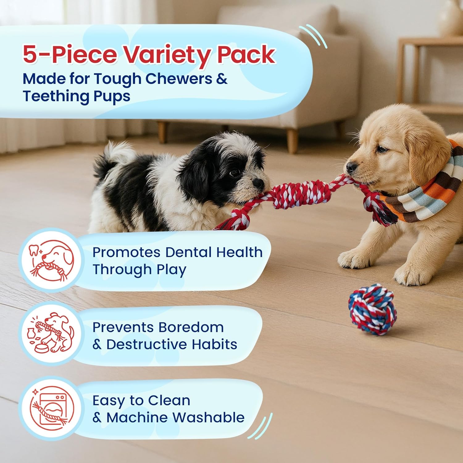 Pacific Pups Products Dog Rope Toys for Medium Dogs & Small Dogs 5 Pack - Puppy Teething Toys and Small Dog Toys - 5 Puppy Chew Toys for Teething