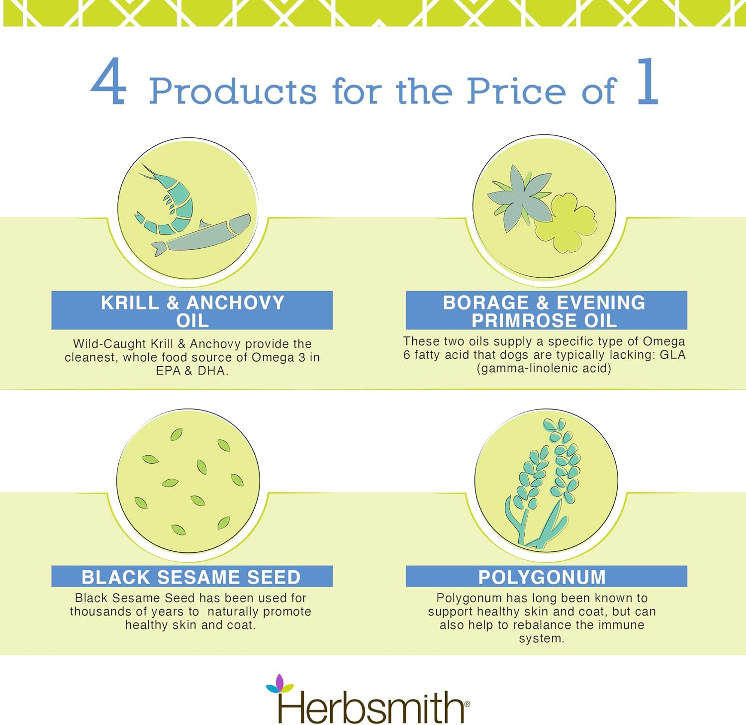 - EXTRA SUPPORT DURING ALLERGY SEASON - If you have an itchy dog with seasonal allergies, Glimmer not only supports skin health but lends a helping hand to allergic skin because omega 3s have anti-inflammatory properties. Glimmer also includes the herb polygonum which can help rebalance the immune system, which is especially helpful for allergies.