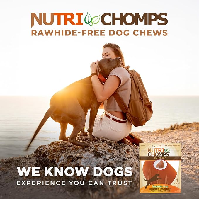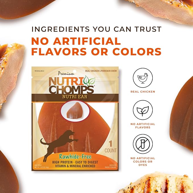 Nutri Chomps Dog Chews, Ear Shaped, Real Chicken Flavor, 1 Count, Easy to Digest, Rawhide Free Dog Treats, Long Lasting, Vitamin and Mineral Enriched