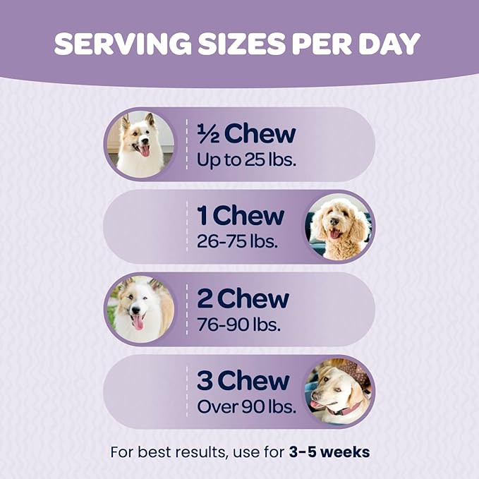 - Visible Results - We include a variety of relaxing ingredients in our chews to help your pooch relax through difficult situations such as long separation thunderstorms fireworks and car rides