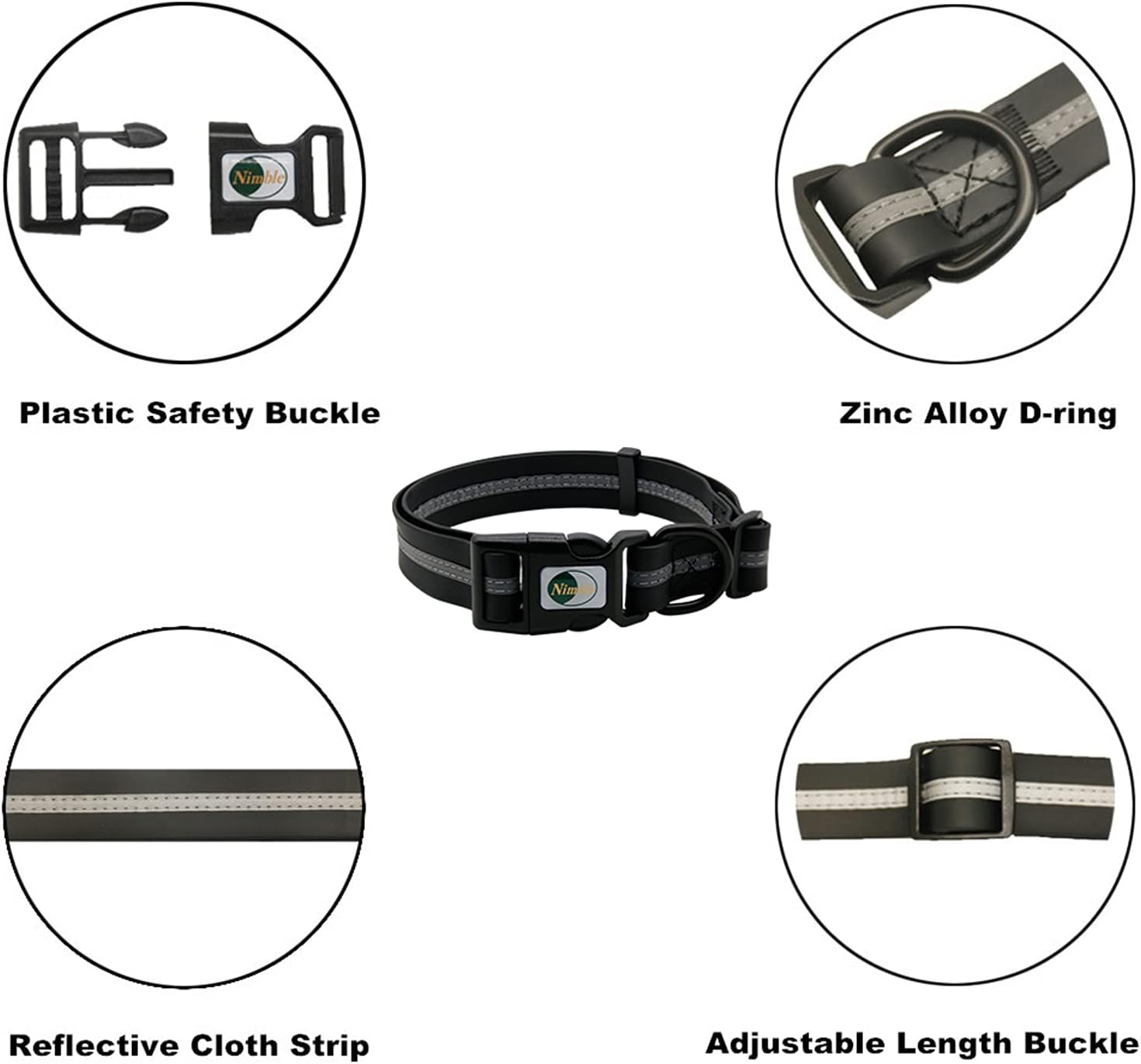 NIMBLE Dog Collar Waterproof Pet Collars Anti-Odor Durable Adjustable PVC & Polyester Soft with Reflective Cloth Stripe Basic Dog Collars S/M/L Sizes (Large (15.35”-24.8”inches), Black)