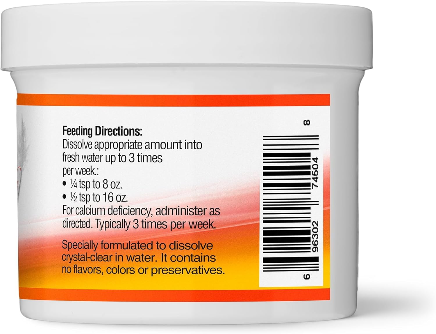 - EASY-TO-USE CALCIUM AND D3 SUPPLEMENT: This fully bioavailable calcium and D3 supplement dissolves clear and tasteless in water—perfect for even the pickiest parrots. Just three servings a week deliver the essential minerals your bird needs for strong bones, eggs, and long-term health. It's a simple, stress-free way to support your bird's well-being every day.