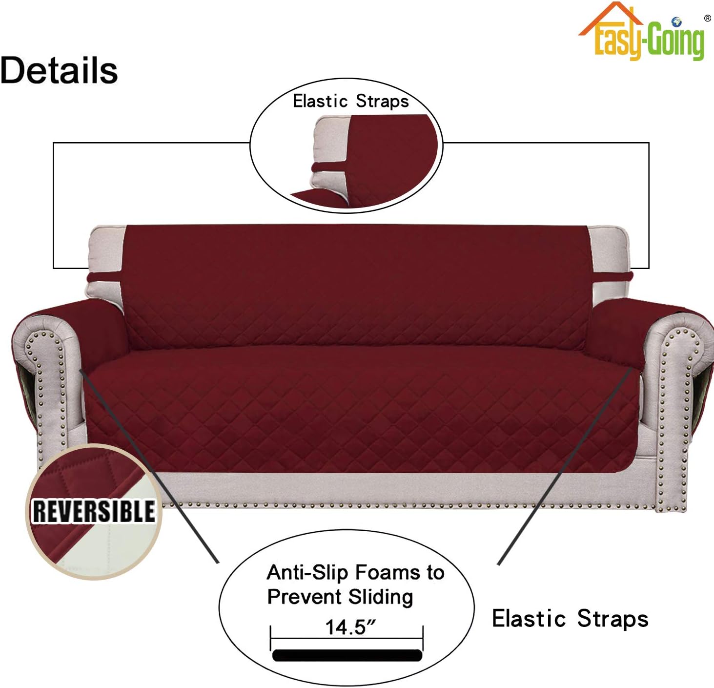 Easy-Going Reversible Loveseat Couch Cover for 2 Cushion Couch Sofa Cover for Dogs Water Resistant Furniture Protector with Foam Sticks Elastic Straps for Pet (Loveseat, Christmas Red/Ivory)