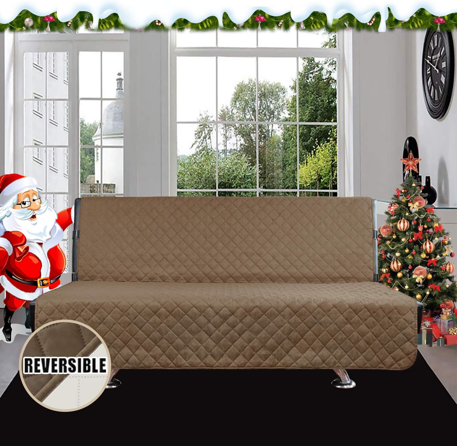 Easy-Going Futon Sofa Slipcover Reversible Sofa Cover Armless Couch Cover Water Resistant Pets, Kids, Children, Dog, Cat (Camel/Ivory)