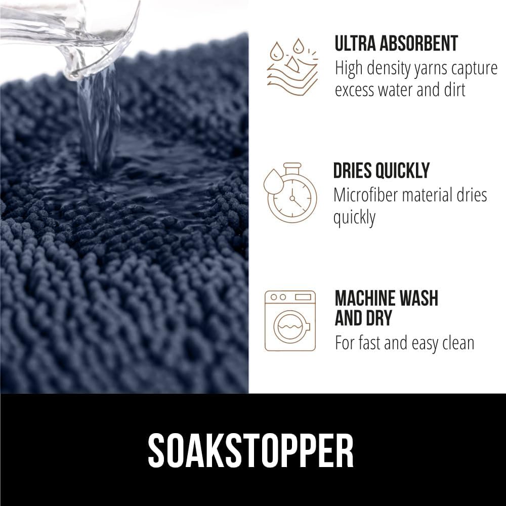 - SOAK STOPPER from GORILLA GRIP: the original Gorilla Grip Soak Stopper mat is highly absorbent, featuring an extra-absorbent top layer, its dense chenille pile absorbs excess moisture, helping to keep floors clean from the toughest messes