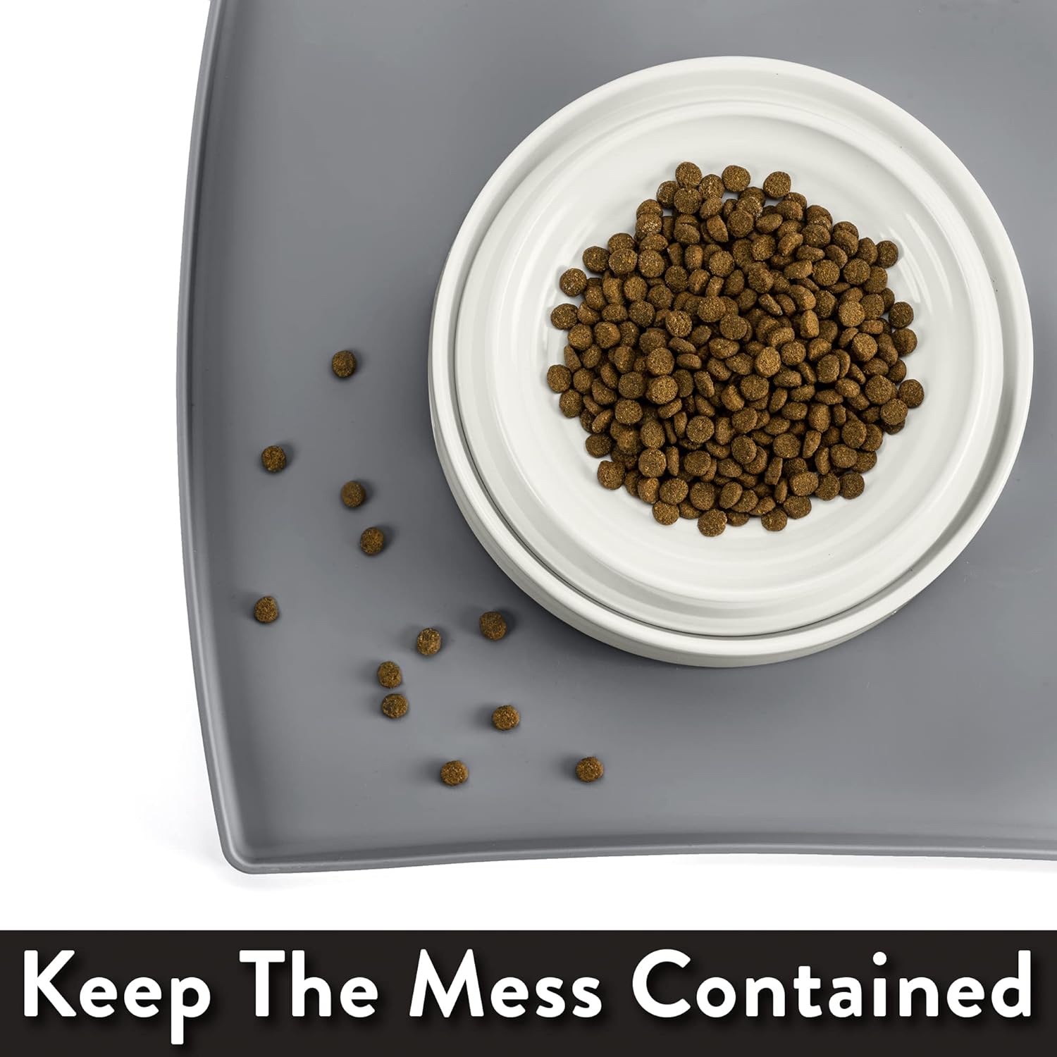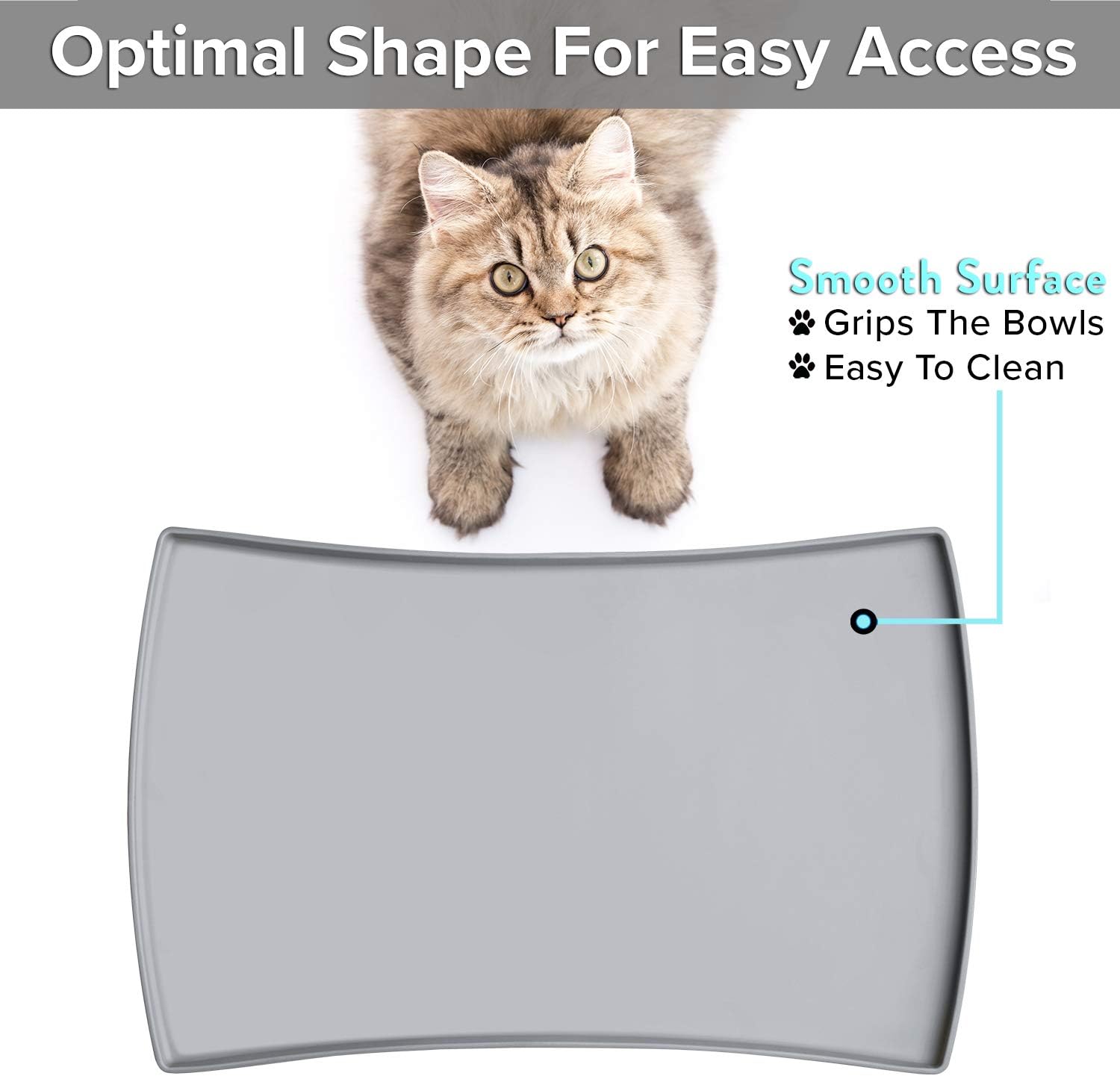 CatGuru Cat Food Mat, Small & Large Pet Food Mat, 100% Waterproof Cat Placemat for Food and Water, Silicone Mats for Pets Bowls, Non-Slip Mats for Pet Bowl or Fountain (Large, Gray)
