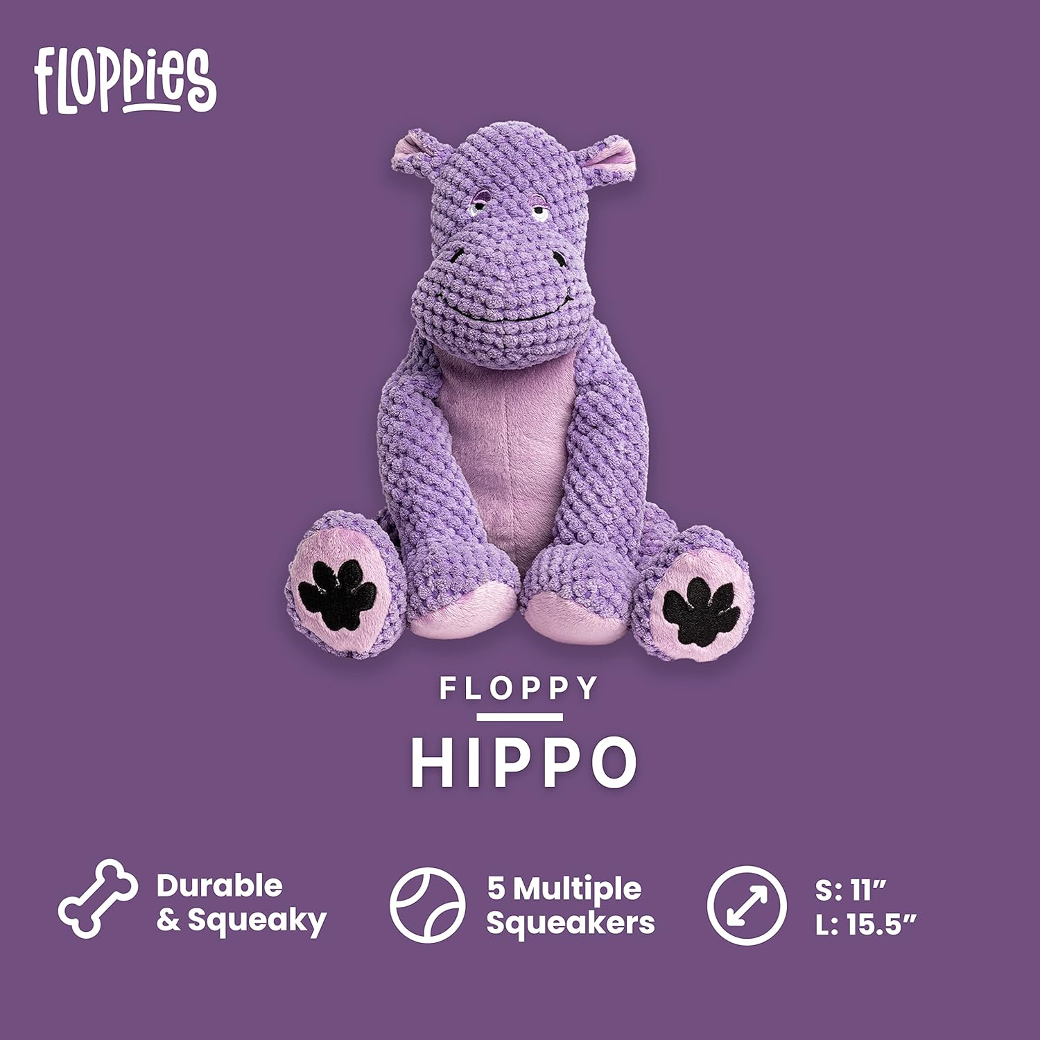 fabdog Floppies Plush Dog Toy - Cute & Durable Squeaky Dog Toys - Best Squeak Toy for Puppies and All Breeds | Ideal Pet Gift| Large Hippo