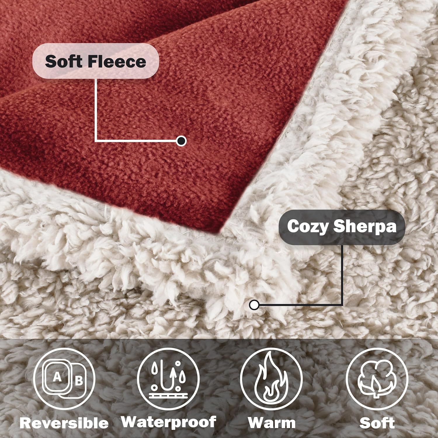 Kritter Planet Waterproof Pet Blanket for Bed, Reversible Sherpa Fleece Protector Couch Cover for Pets, Liquid Proof Furniture Protector for Medium Large Dogs