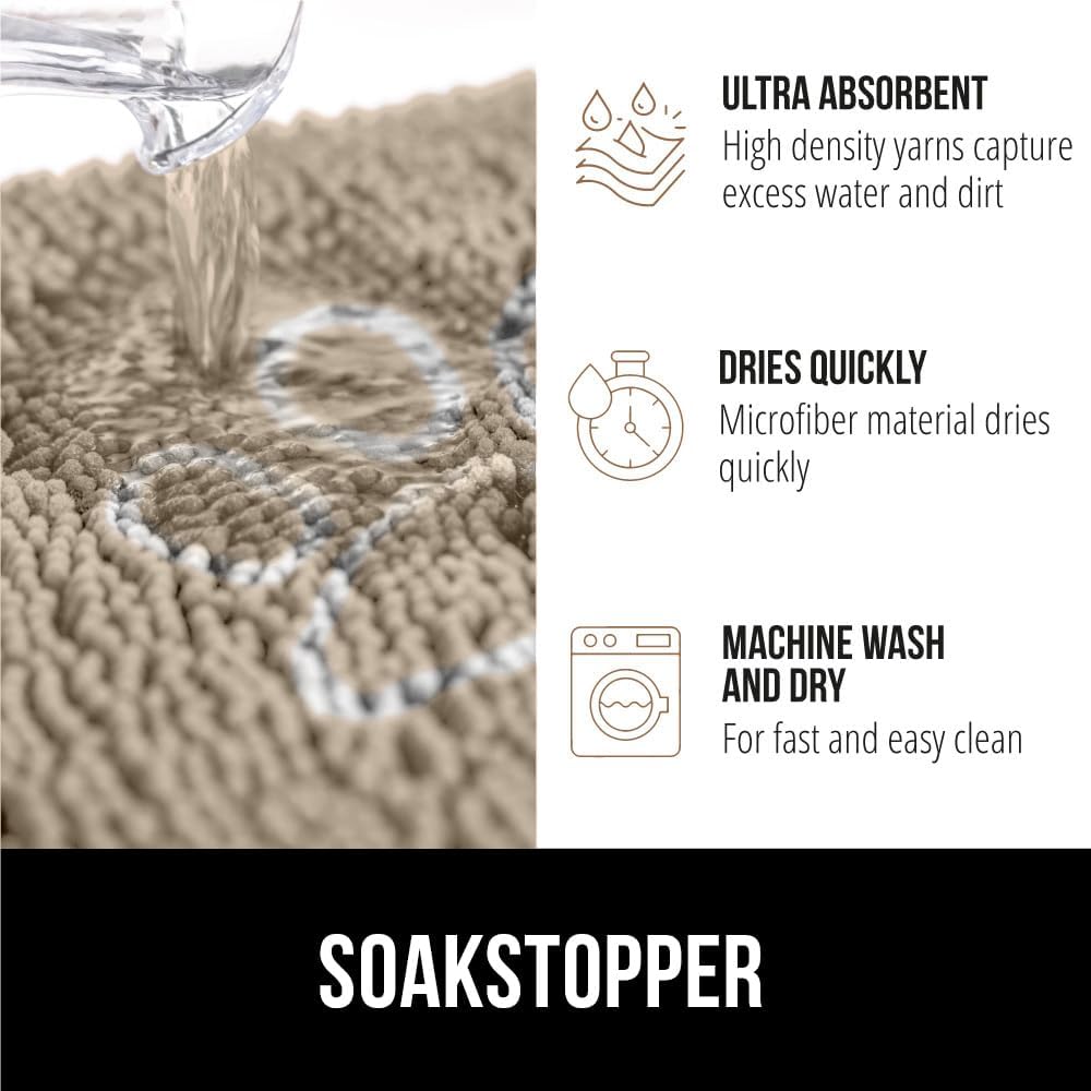 - SOAK STOPPER from GORILLA GRIP: the original Gorilla Grip Soak Stopper mat is highly absorbent, featuring an extra-absorbent top layer, its dense chenille pile absorbs excess moisture, helping to keep floors clean from the toughest messes