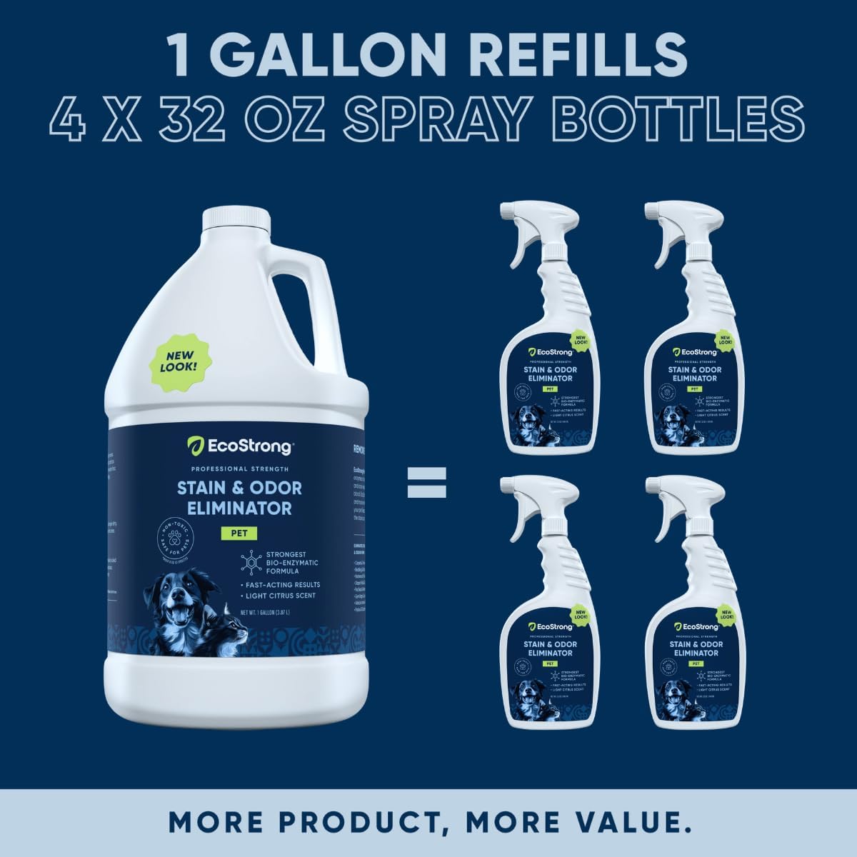 Eco Strong Pet Stain and Odor Remover - Cat Urine Enzyme Cleaner Destroyer, Urine Destroyer for Dogs, Pet Urine Enzyme Cleaner - 128 Oz