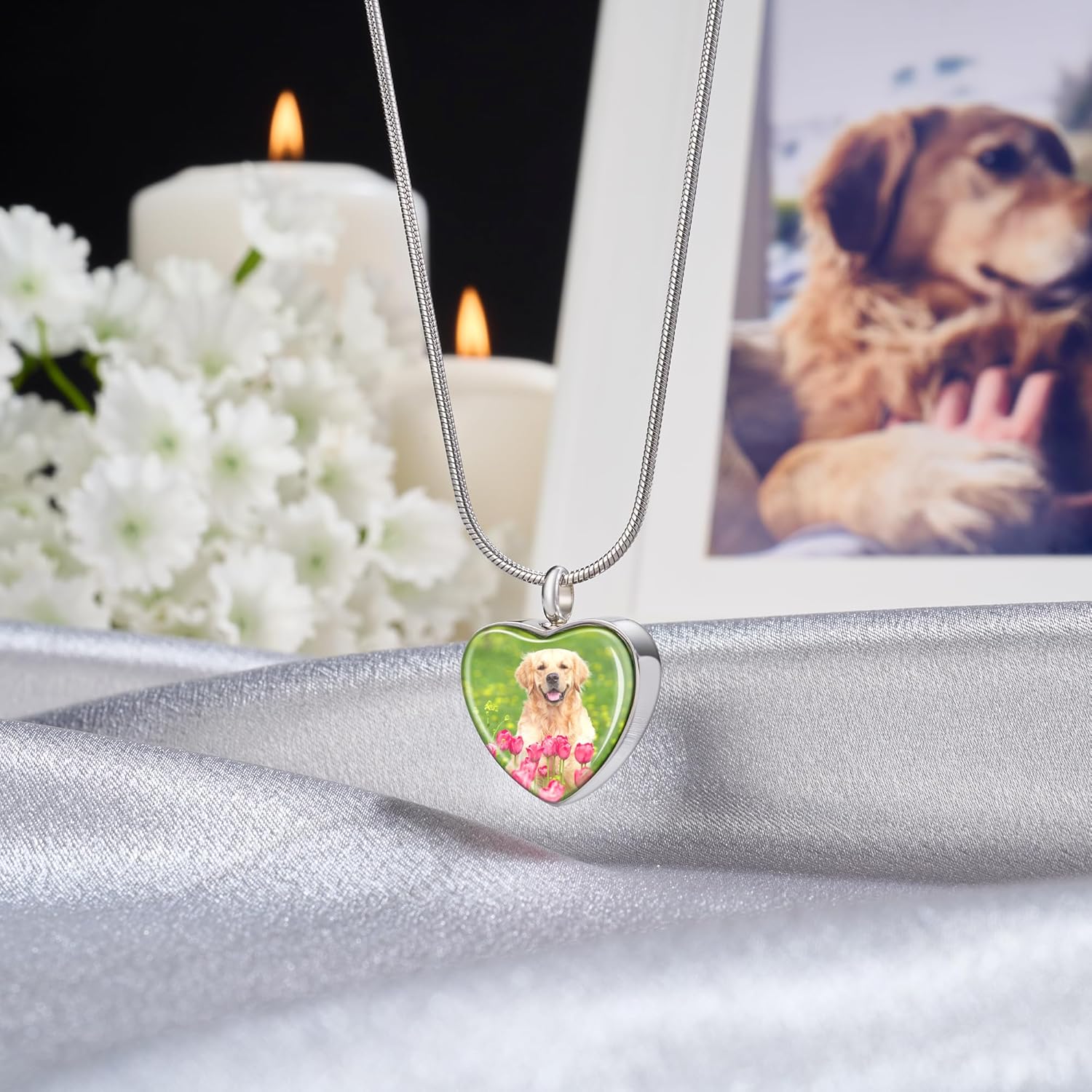 - [Cute Personalized Pet Ashes Necklace-Protect Your Fur baby Safe & Sound] This dog/cat urn necklace features a beautiful heart pendant, symbolizing the love and bond between a pet and its owner. Carrying a small portion of your beloved 4 legged friend's ashes and keeping him/her close to your heart wherever you go, this memorial keepsake would always comfort your heart.