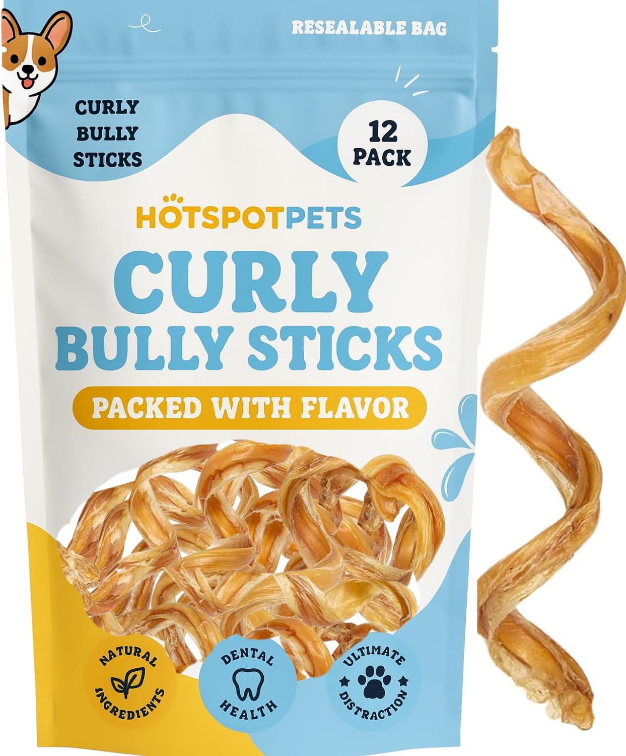 hotspot pets Curly Spring Bully Sticks for Dogs - (12 Pack) Premium All Natural Long Twisted Beef Pizzle Dog Chew Treats - Grain Free Fully Digestible Rawhide Alternative - 6 Inch Stix