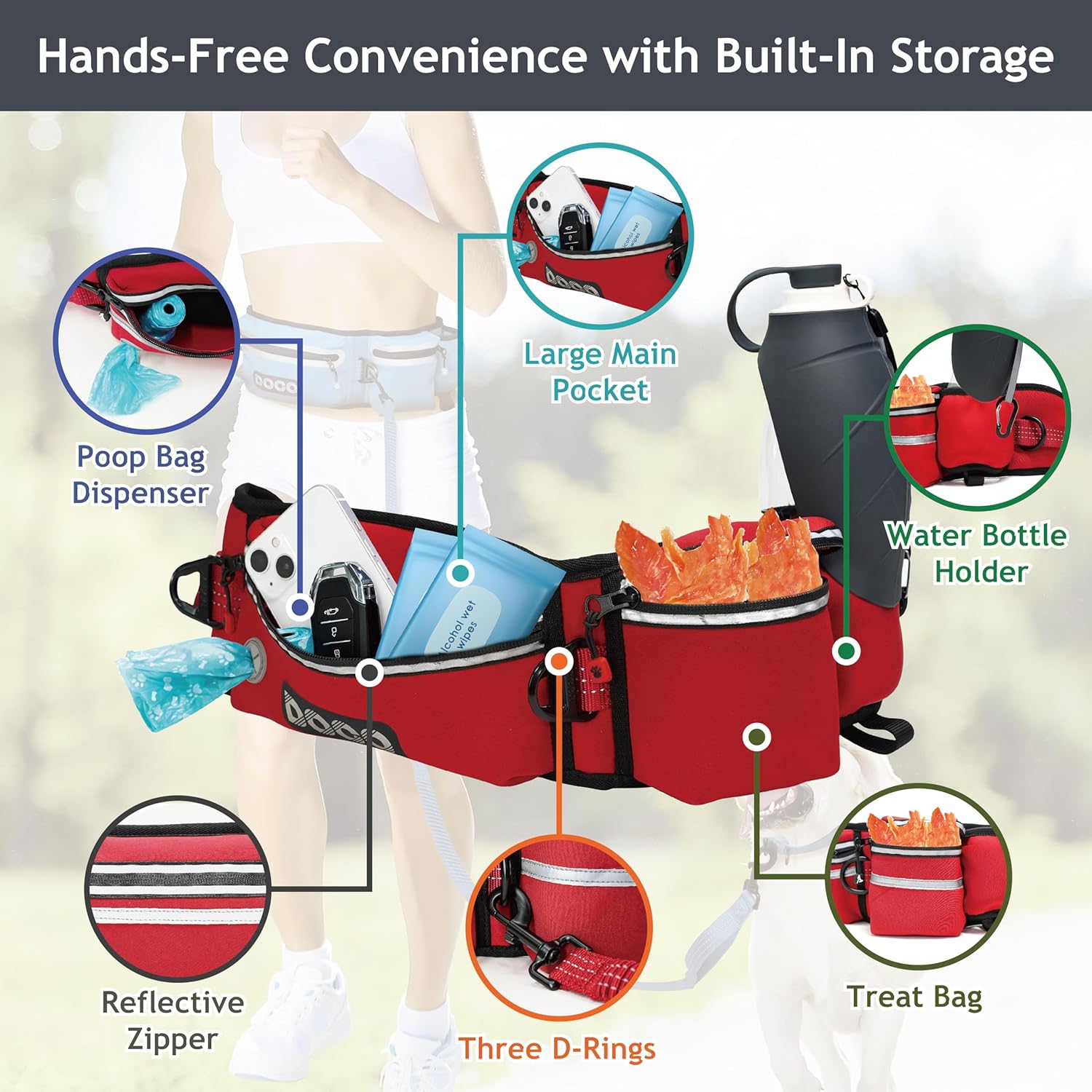 - TIRED OF BULKY LEASHES THAT HURT YOUR HANDS AND LIMIT YOUR MOVEMENT? Upgrade to this hands free dog leash with an adjustable waist belt and dual padded handles. Enjoy effortless control and comfort whether you're jogging, hiking, or training no more leash burns or hand fatigue.