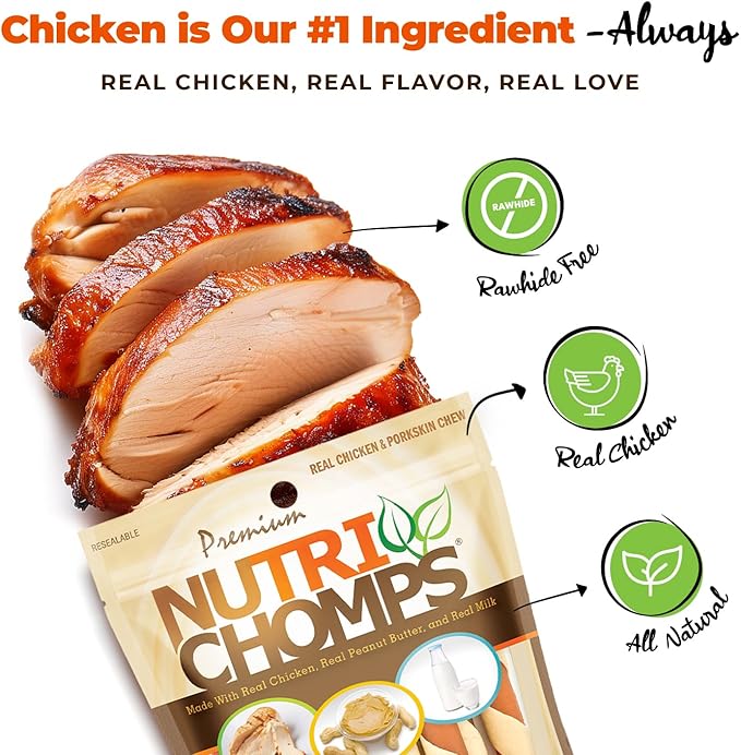 NutriChomps Dog Chews, 5-inch Twists, Easy to Digest, Rawhide-Free Dog Treats, 12 Count, Real Chicken, Peanut Butter and Milk flavors