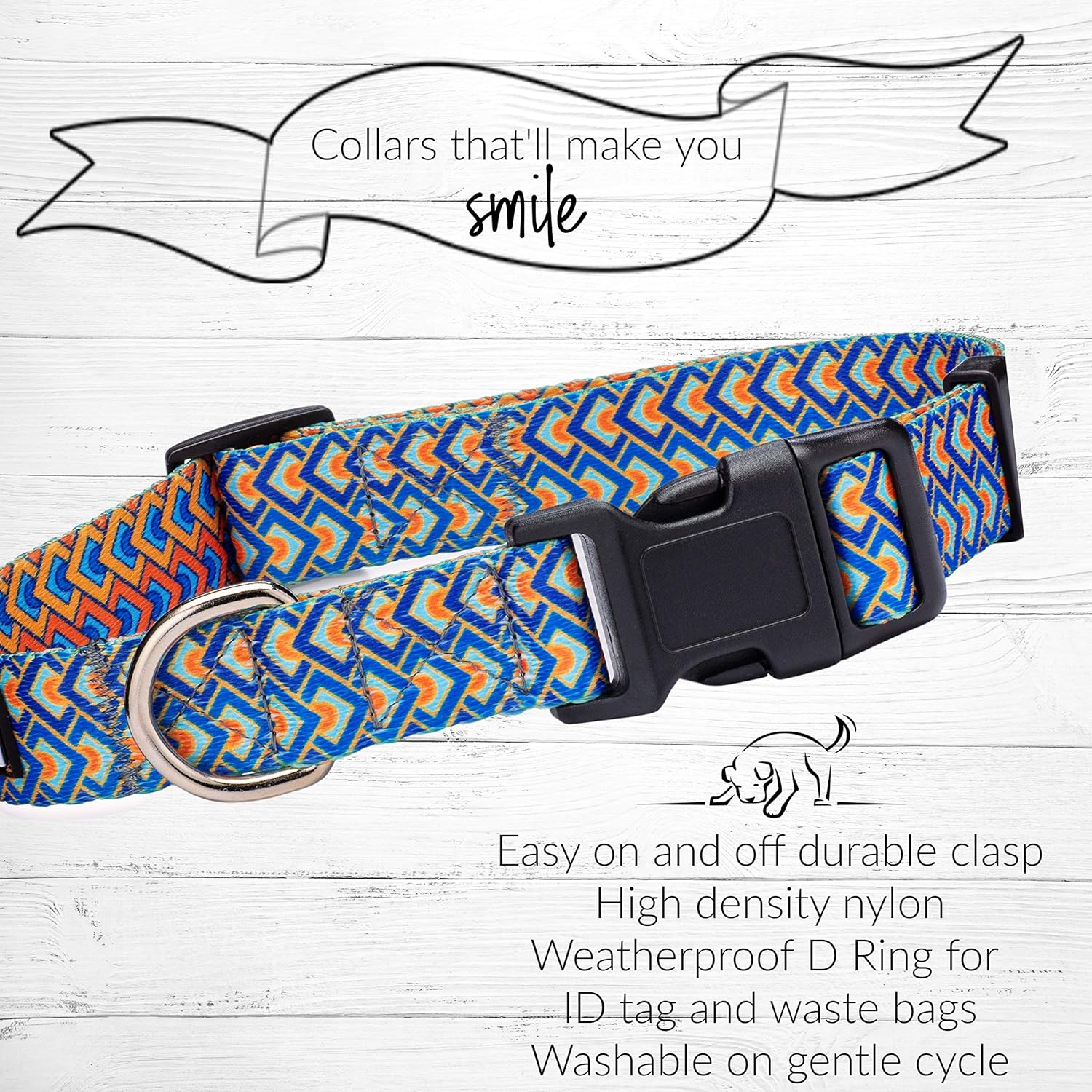 - 🤍CONVENIENT AND RELIABLE - EASY CLICK ON/OFF COLLAR BUCKLE GETS YOU AND YOUR DOG OUT THE DOOR QUICKLY! Our collars are durably constructed with an easy click, strong buckle, weatherproof D ring and HIGH DENSITY nylon. Our soft and flexible collars are dog approved – they are super comfortable, as well as long lasting. Washable by hand or on gentle cycle. Lucky Love Dog adjustable collars come in four or five sizes (depending on pattern). SEE SIZING BELOW