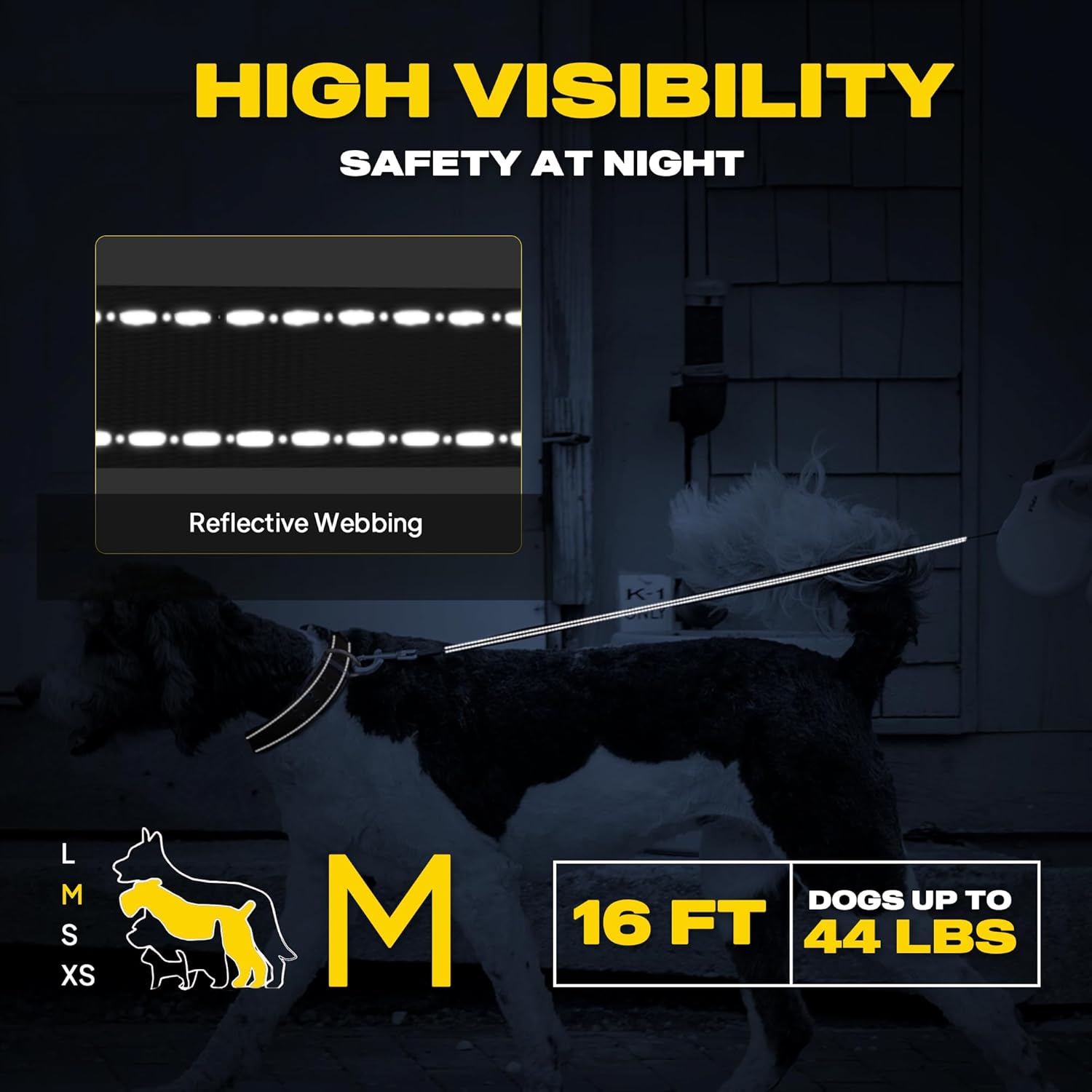- HEAVY DUTY, DURABLE & STEADY - 16 ft high strength nylon tape with durable rustproof swivel hook and steady impact-resistant ABS material, suitable for Small and Medium dogs or cats up to 44 lbs. Top durability Internal Coil Spring for Consistent Retraction several years.