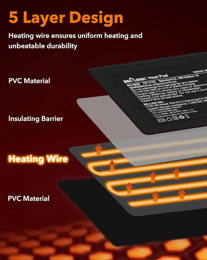 - ENERGY EFFICIENT AND SPACE-SAVING: The BN-LINK Heating Pad is both compact and packs a punch. The heating wire and insulation allows the mat to reach the desired temperatures within minutes yet only uses 8 Watts to help you save on electricity costs.