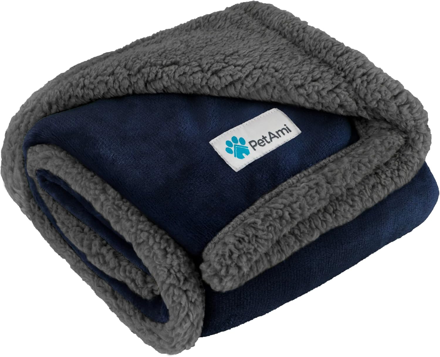 PetAmi Dog Blanket for Small Medium Dogs, Pet Bed Blanket Cat Puppy Kitten, Fleece Furniture Couch Cover Protector Sofa Car, Soft Sherpa Dog Throw Plush Reversible Washable, Mini 29x40 Blue Gray