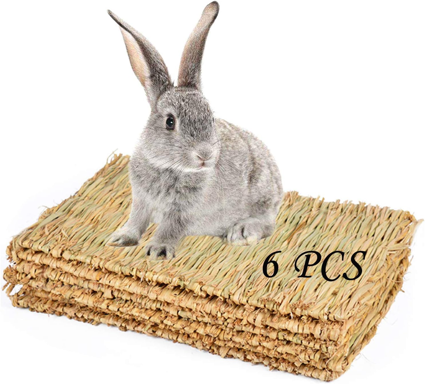 PINVNBY 6 Pack Rabbit Grass Mat,Bunny Natural Straw Woven Bed,Small Animal Cages Hay Nest Sleeping,Chewing,Nesting and Toys for Rabbits Guinea Pig Hamster Hedgehog and Squirrel Bed Mat