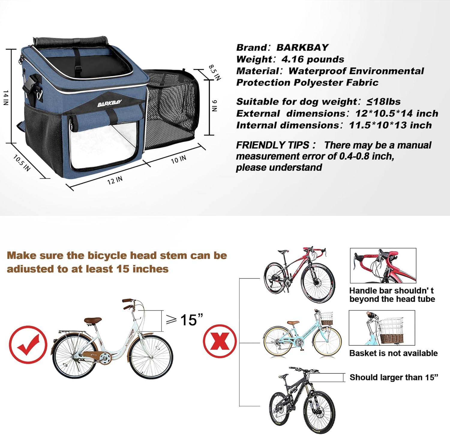 - 【IDEAL FOR SMALL SIZED DOGS】 - Holds pets up to 18 pounds. When you use it as a dog bike basket, it easy to disassemble and reassemble quickly for convenience sake so you can constantly take the bike basket on and off the bike to use it as a pet bed or dog car carrier.