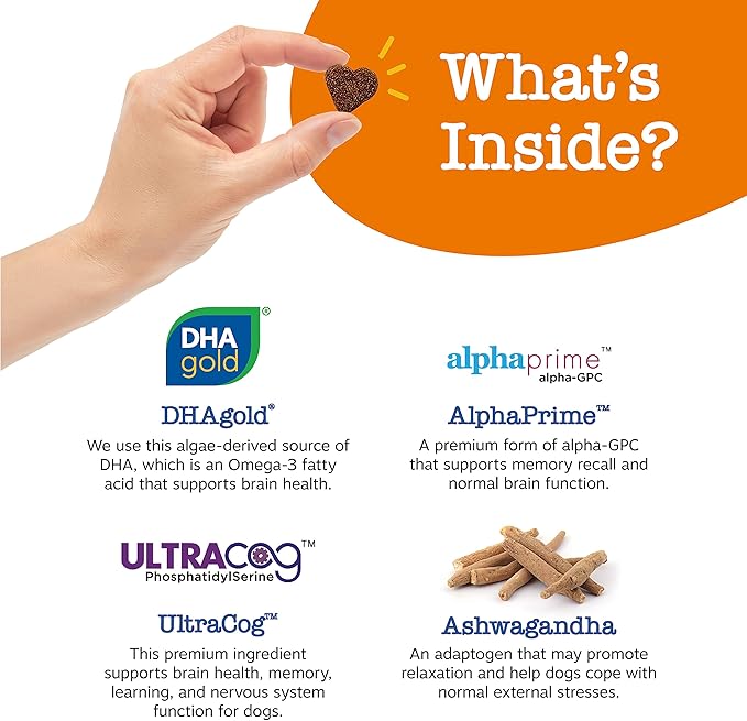 - Perfect for Senior Dogs - These delicious pet chewables make for the perfect cognitive booster any aging doggy, large or small, that needs care for their brain function, composure, and alertness.