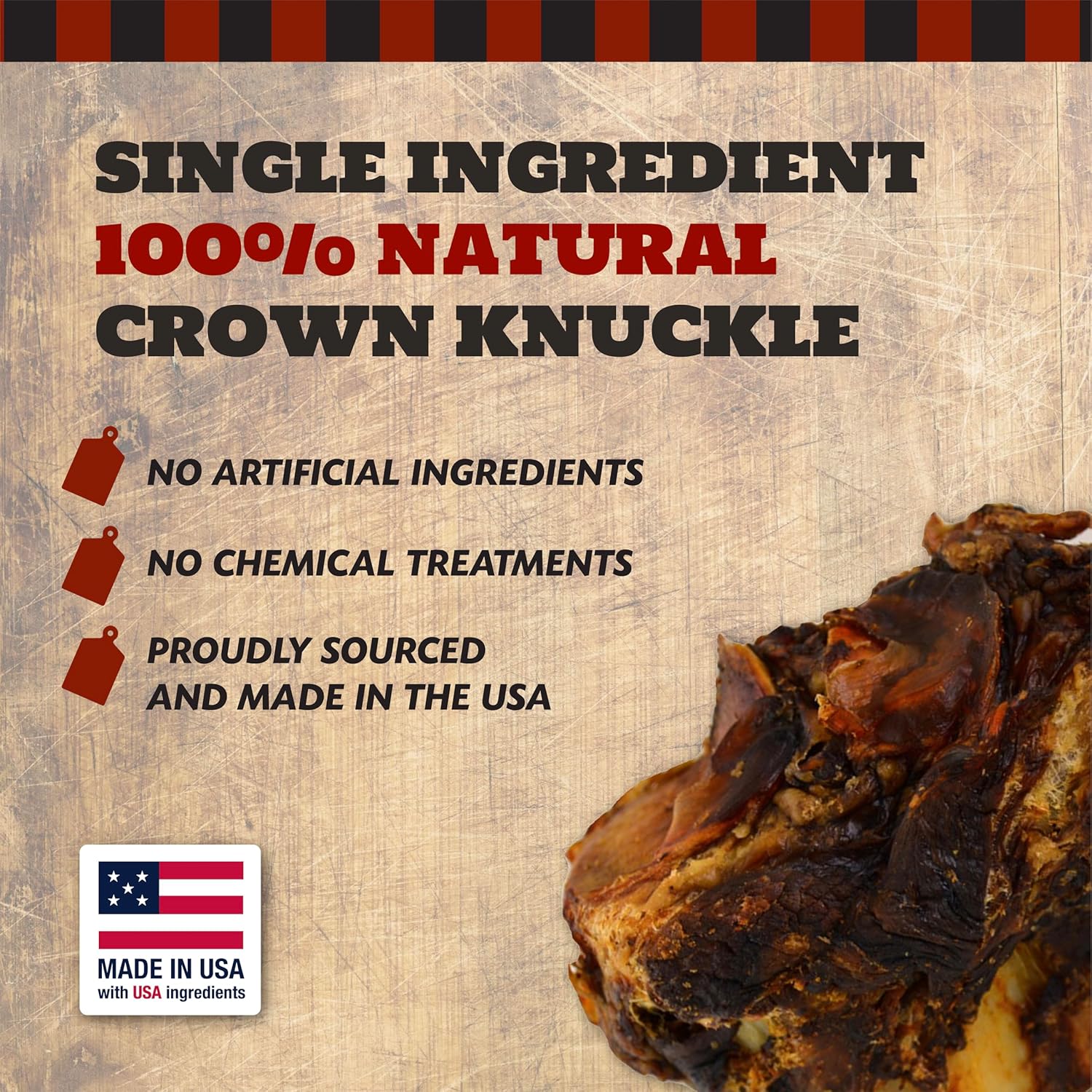 - NATURAL & NUTRITIOUS: Includes 4 Beef Crown Knuckle Bones for dogs. Our natural hickory smoked .55-1.25lb beef knuckle bones are trimmed with meaty tidbits for an irresistible chew with rich, long lasting flavor. Knuckle bones are tough and durable making them perfect chews for large dogs and aggressive chewers.