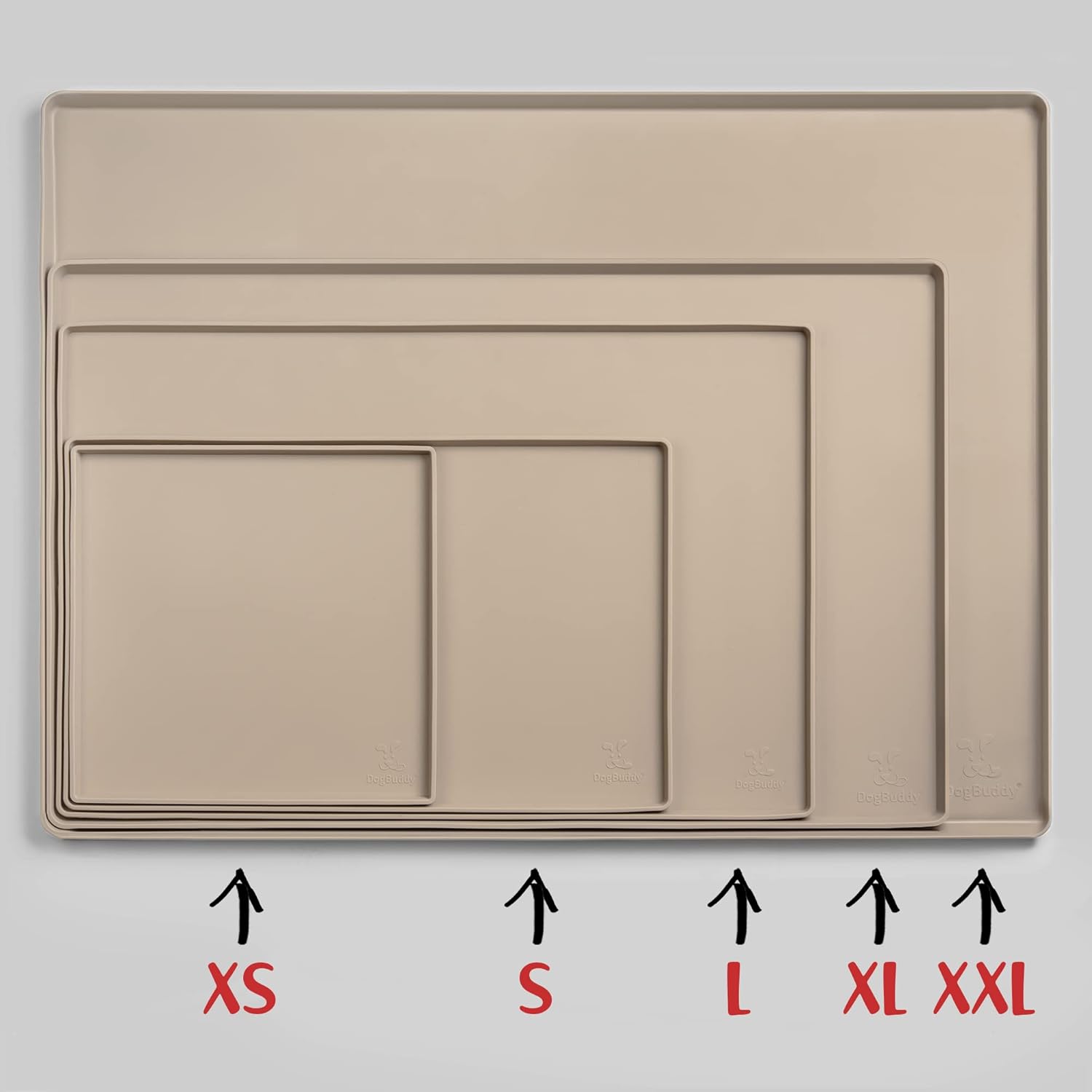 DogBuddy Dog Food Mat – Waterproof Dog Bowl Mat for Food and Water, Silicone Pet Feeding Mats for Floors, Non-Slip Placemat with High Edges for Dogs Bowls, Puppy Essentials (Large: 24"x16", Taupe)