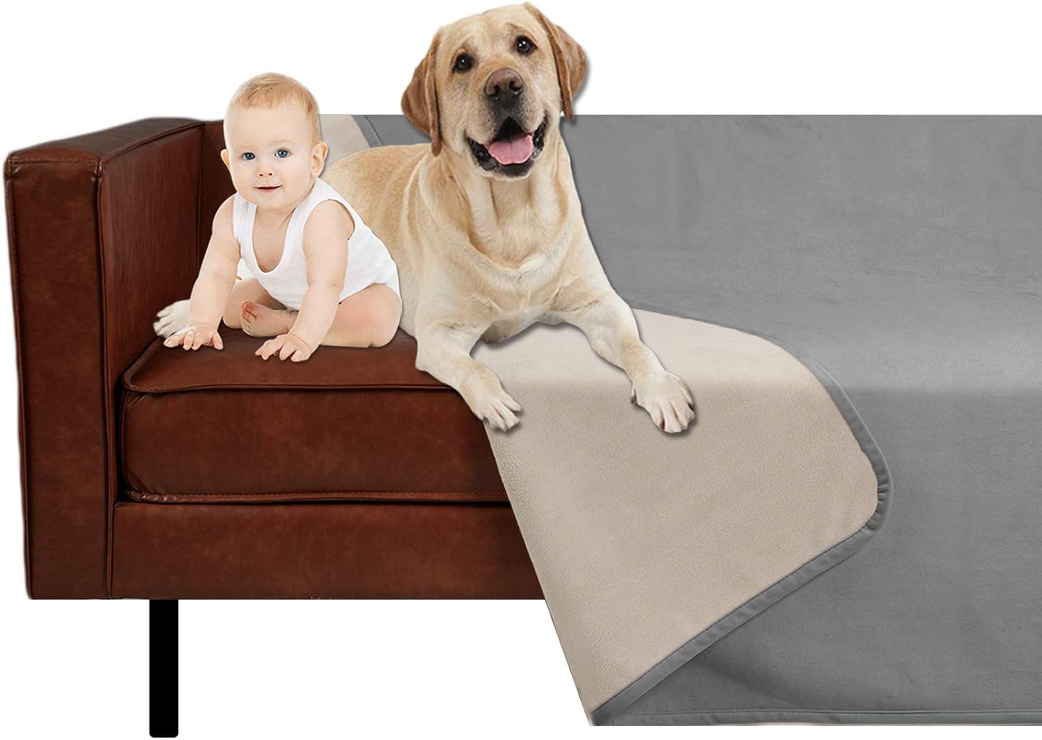 Ameritex Pet Bed Blanket Reversible 100% Waterproof Velvet Super Soft for Sofa and Bed (52x82 Inches, Light Grey+Beige)