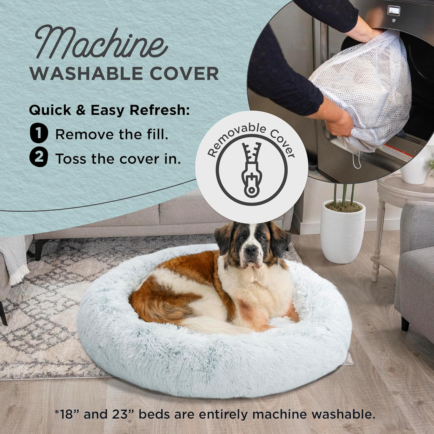 Best Friends by Sheri Bundle Set The Original Calming Shag Donut Cuddler Cat and Dog Bed + Pet Throw Blanket, Frost, Extra Large, 45x45