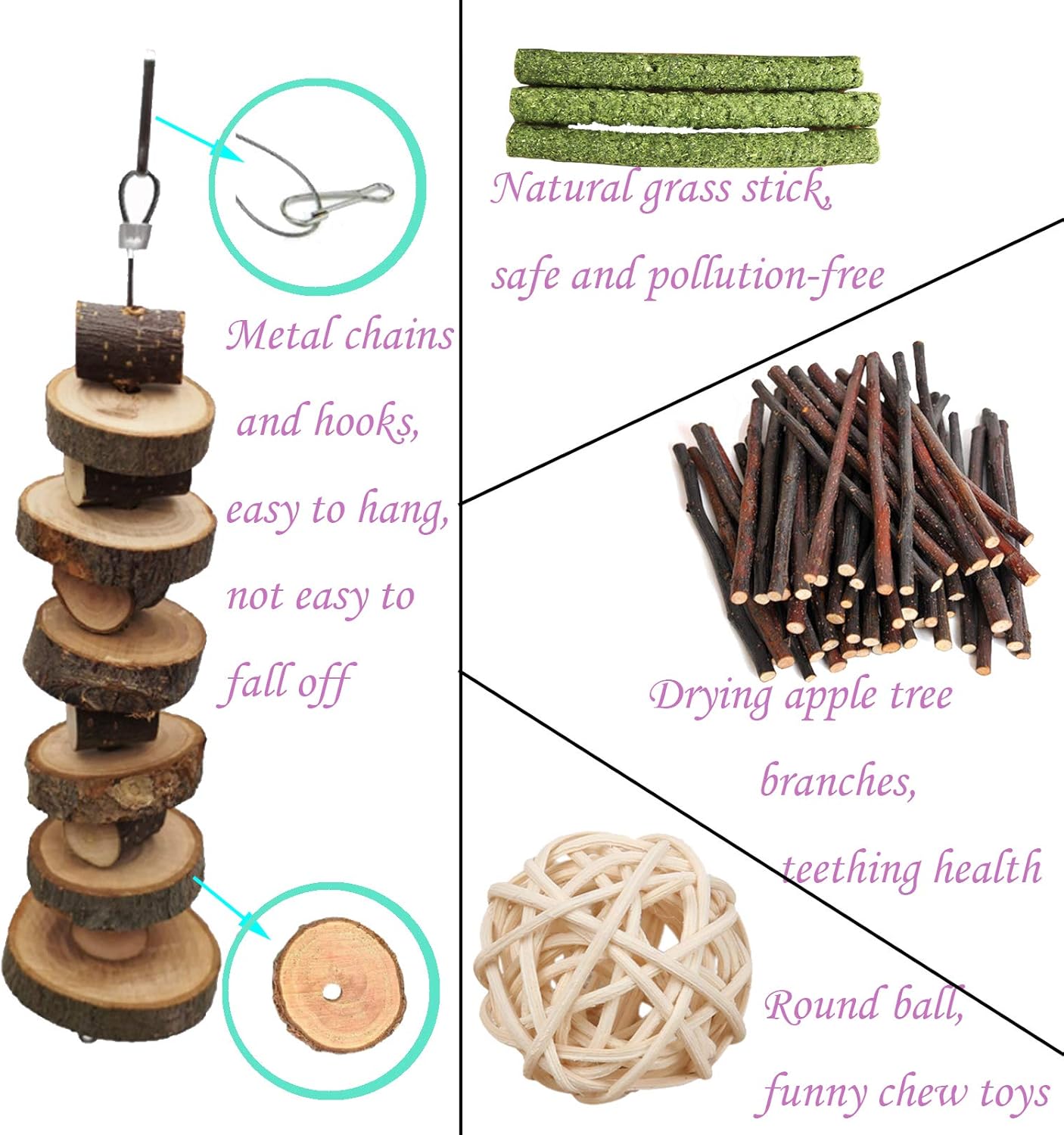 - 🐇PACKAGE INCLUDE: 2 bunny grass house, 50g apple tree branch, 3 grass sticks, 1 apple wood skewer, 4 S-shaped hooks, 1 simulation paper carrot, 3 pine cones, 2 pieces of colored loofah, 3 ranttan Ball and 10 meters rope