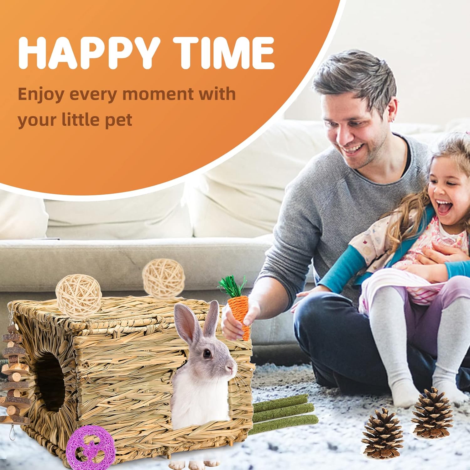 Bunny Grass House-Hand Made Edible Natural Grass Hideaway Comfortable Playhouse for Rabbits, Guinea Pigs and Small Animals to Play,Sleep and Eat