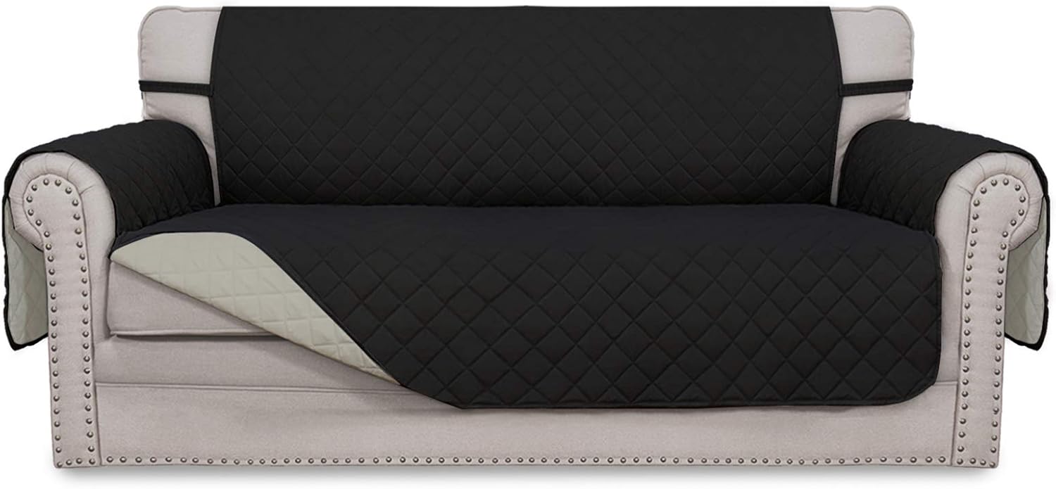 Easy-Going Sofa Slipcover Reversible Loveseat Sofa Cover Couch Cover for 2 Cushion Couch Furniture Protector with Elastic Straps for Pets Kids Dog Cat (Oversized Loveseat, Black/Beige)