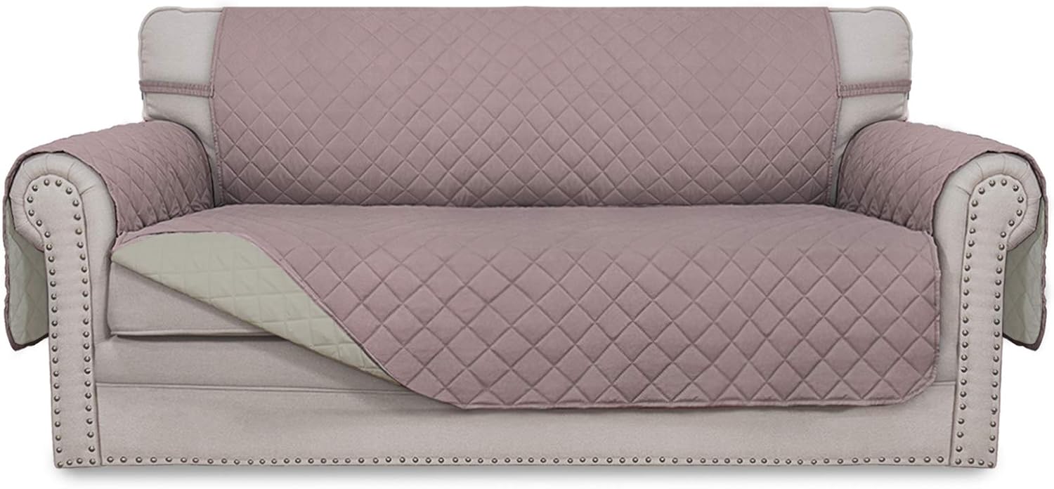 Easy-Going Sofa Slipcover Reversible Loveseat Sofa Cover Couch Cover for 2 Cushion Couch Furniture Protector with Elastic Straps for Pets Kids Dog Cat (Oversized Loveseat, Pink/Beige)