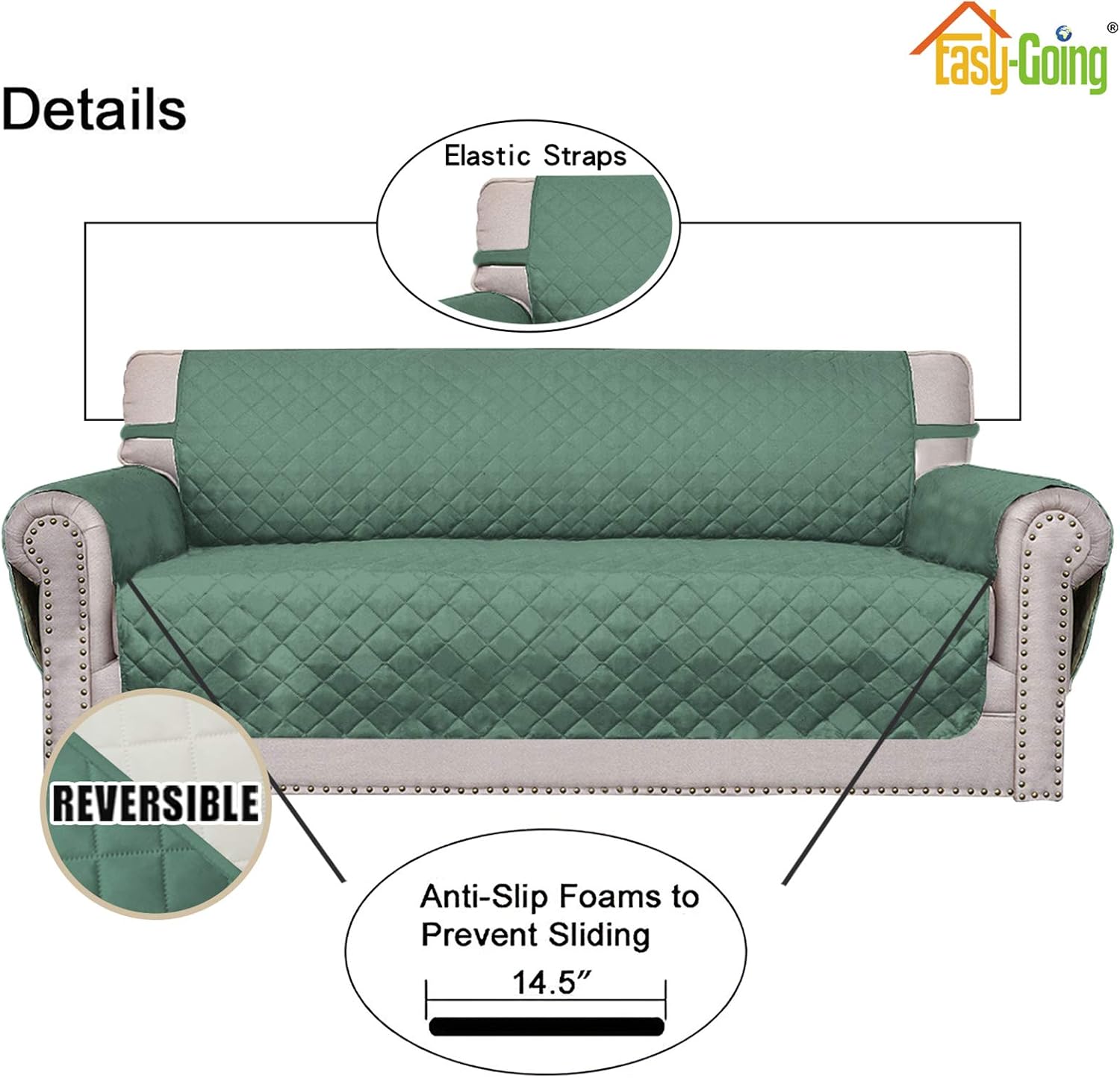 Easy-Going Sofa Slipcover Reversible Loveseat Sofa Cover Couch Cover for 2 Cushion Couch Furniture Protector with Elastic Straps for Pets Kids Dog Cat (Oversized Loveseat, Cyan/Ivory)