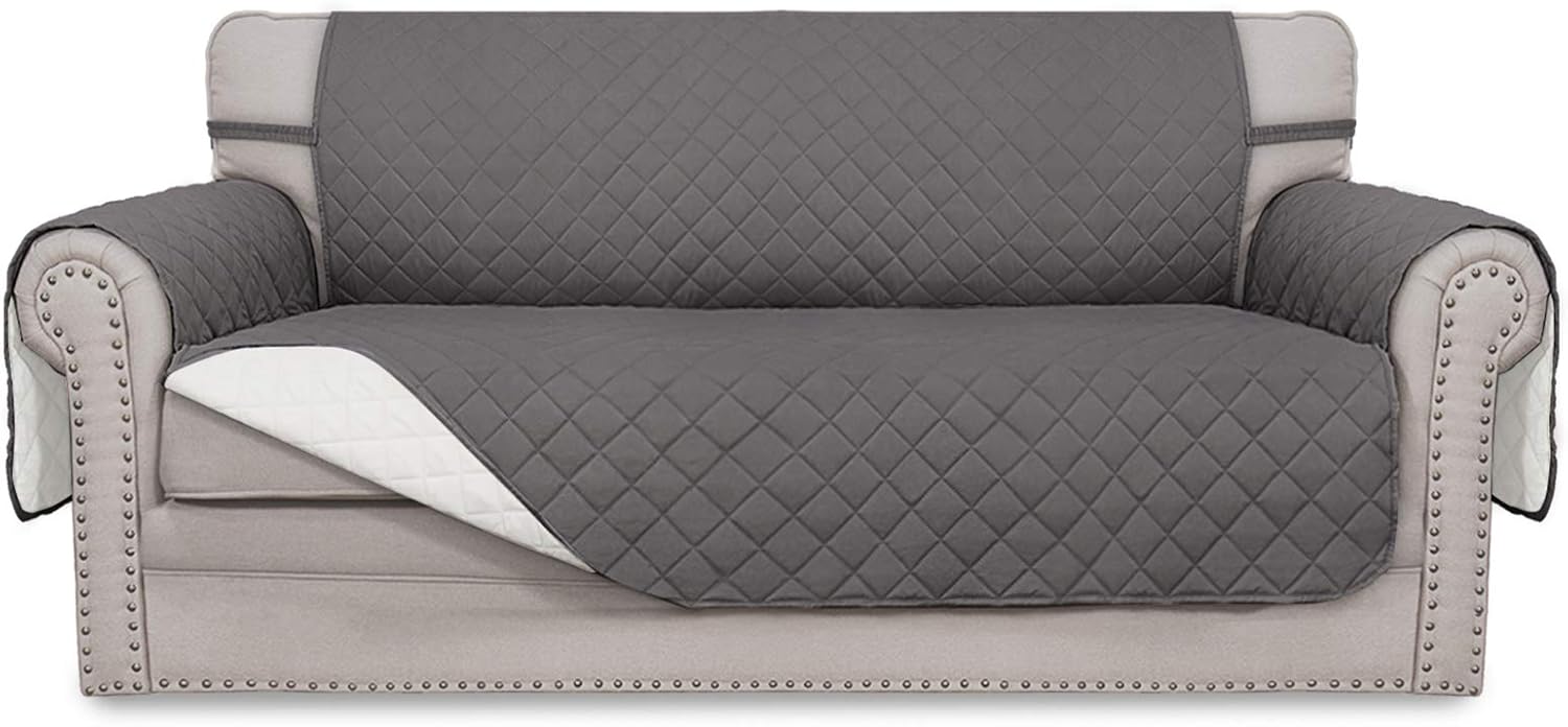 Easy-Going Sofa Slipcover Reversible Loveseat Sofa Cover Couch Cover for 2 Cushion Couch Furniture Protector with Elastic Straps for Pets Kids Dog Cat (Oversized Loveseat, Gray/Ivory)