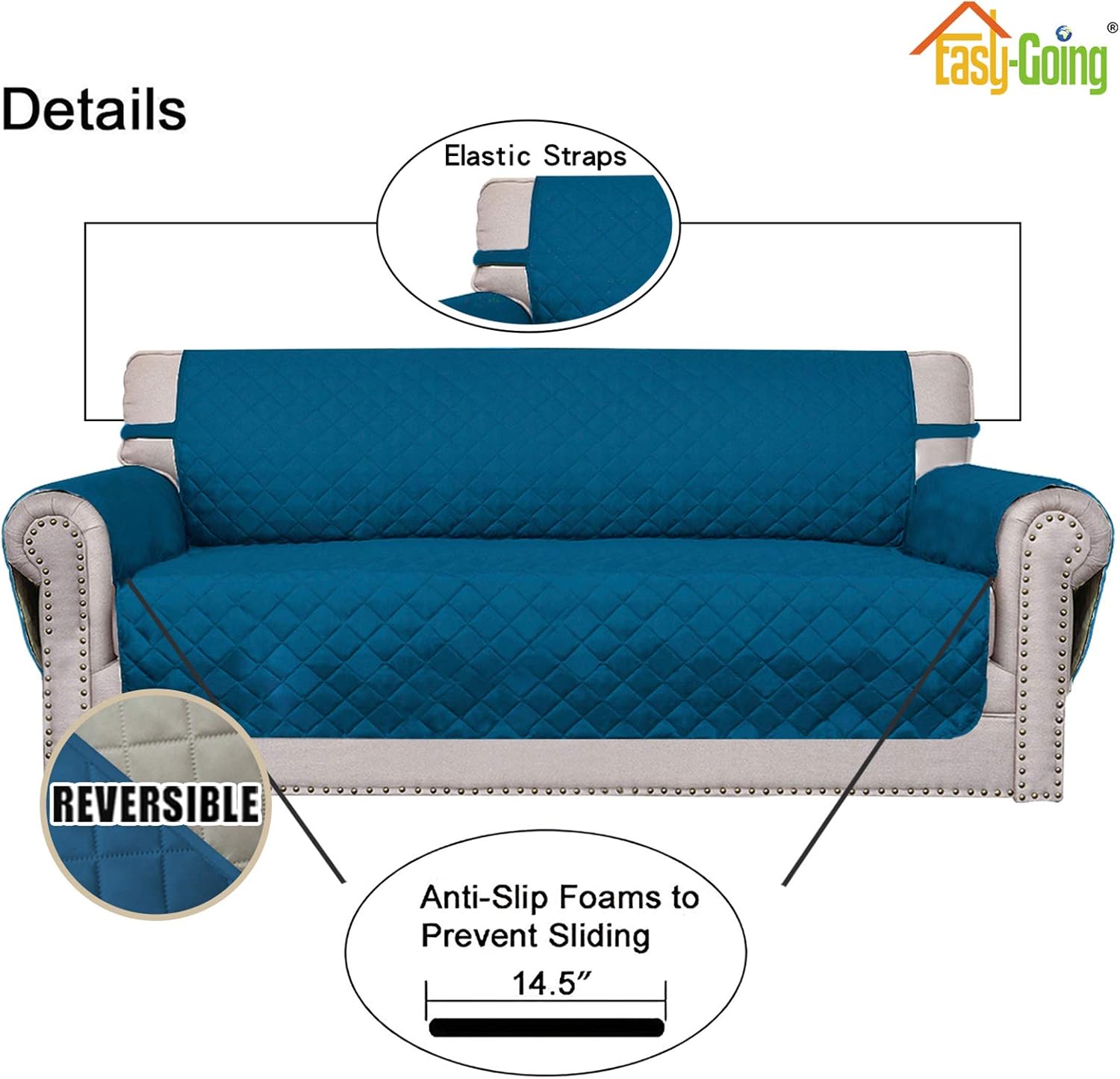Easy-Going Sofa Slipcover Reversible Loveseat Sofa Cover Couch Cover for 2 Cushion Couch Furniture Protector with Elastic Straps for Pets Kids Dog Cat (Oversized Loveseat, PeacockBlue/Beige)