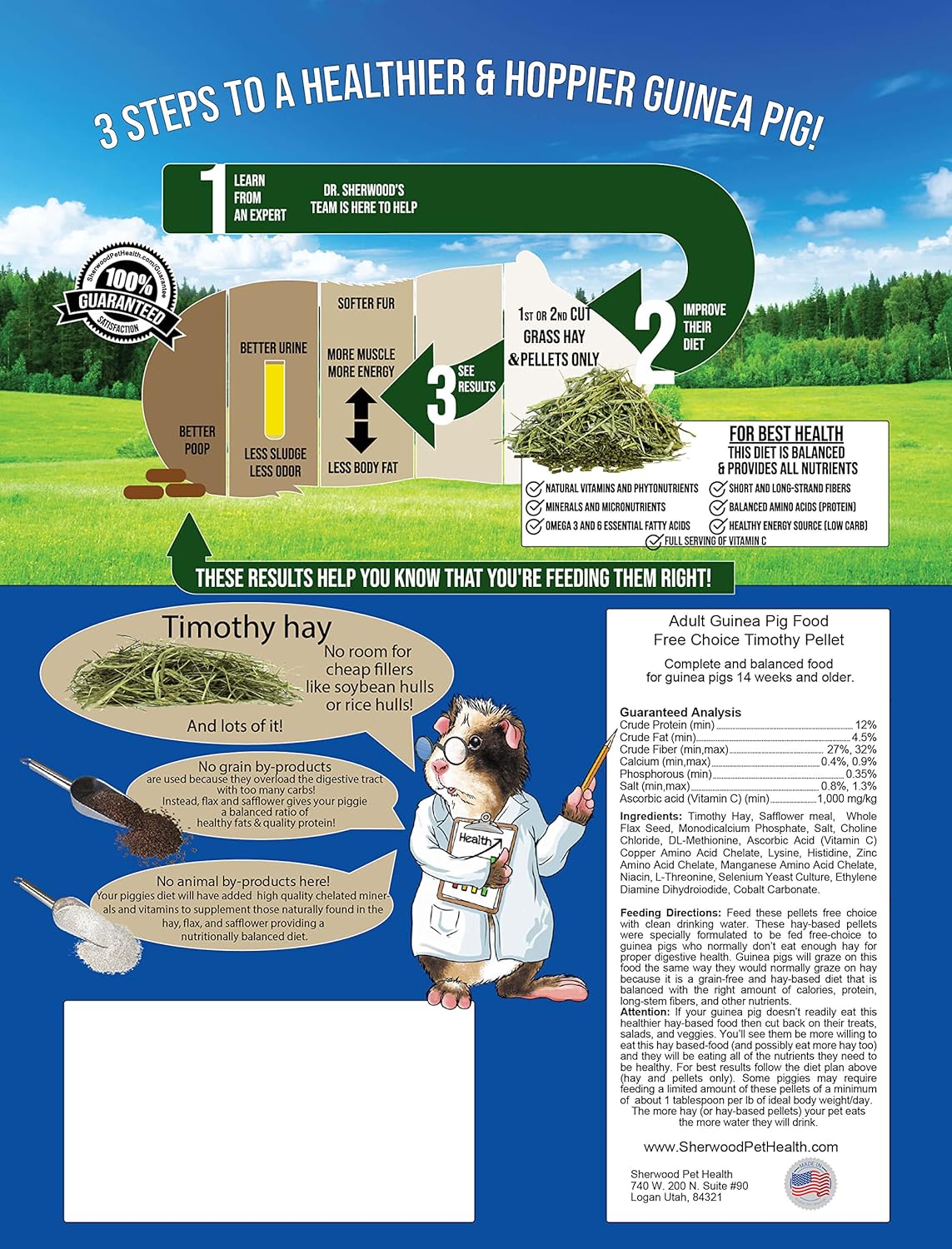 Sherwood Pet Health Adult Guinea Pig Food - Free Choice Timothy Pellet-4.5lbs