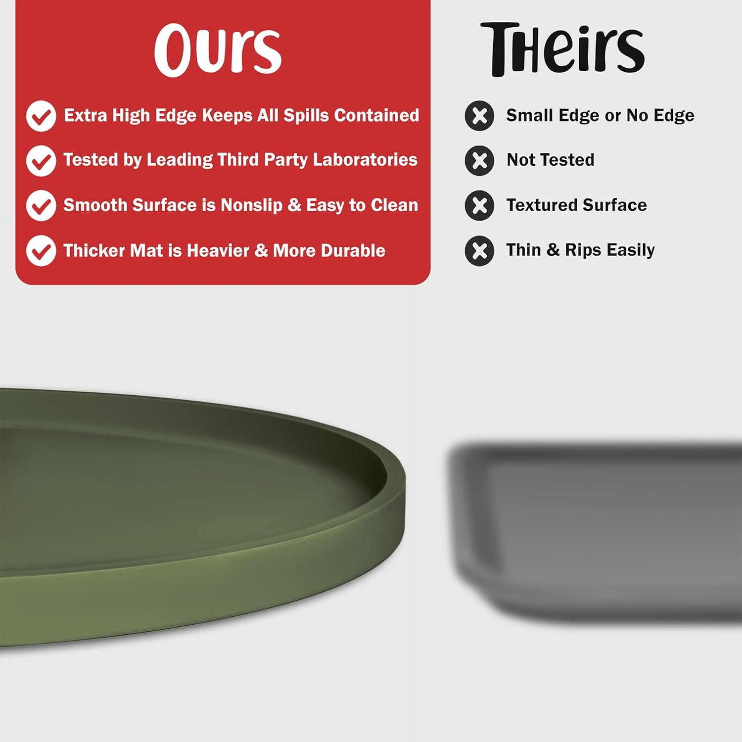DogBuddy Dog Food Mat - Waterproof Dog Bowl Mat, Silicone Pet Mat for Food and Water Bowls, Nonslip Pet Feeding Mat with Edges, Dogs Food Mats for Floors, Puppy Supplies (Large, Khaki Green)