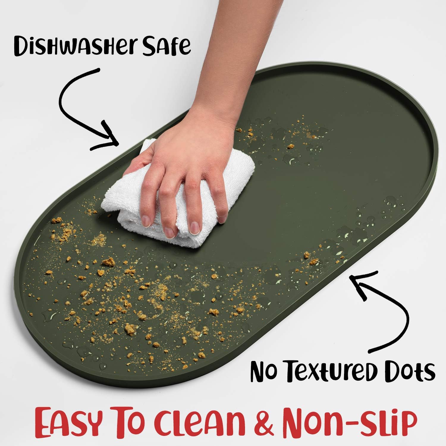 DogBuddy Dog Food Mat - Waterproof Dog Bowl Mat, Silicone Pet Mat for Food and Water Bowls, Nonslip Pet Feeding Mat with Edges, Dogs Food Mats for Floors, Puppy Supplies (Small, Khaki Green)