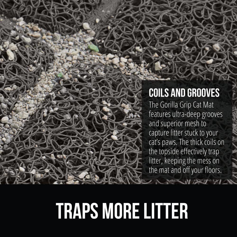 - THE ORIGINAL LITTER TRAPPER: the cat mat is constructed from durable long lasting materials; topside features thick mesh coils that effectively grab litter; deep grooves on the topside also collect litter, keeping it contained to the mat and off of your floors