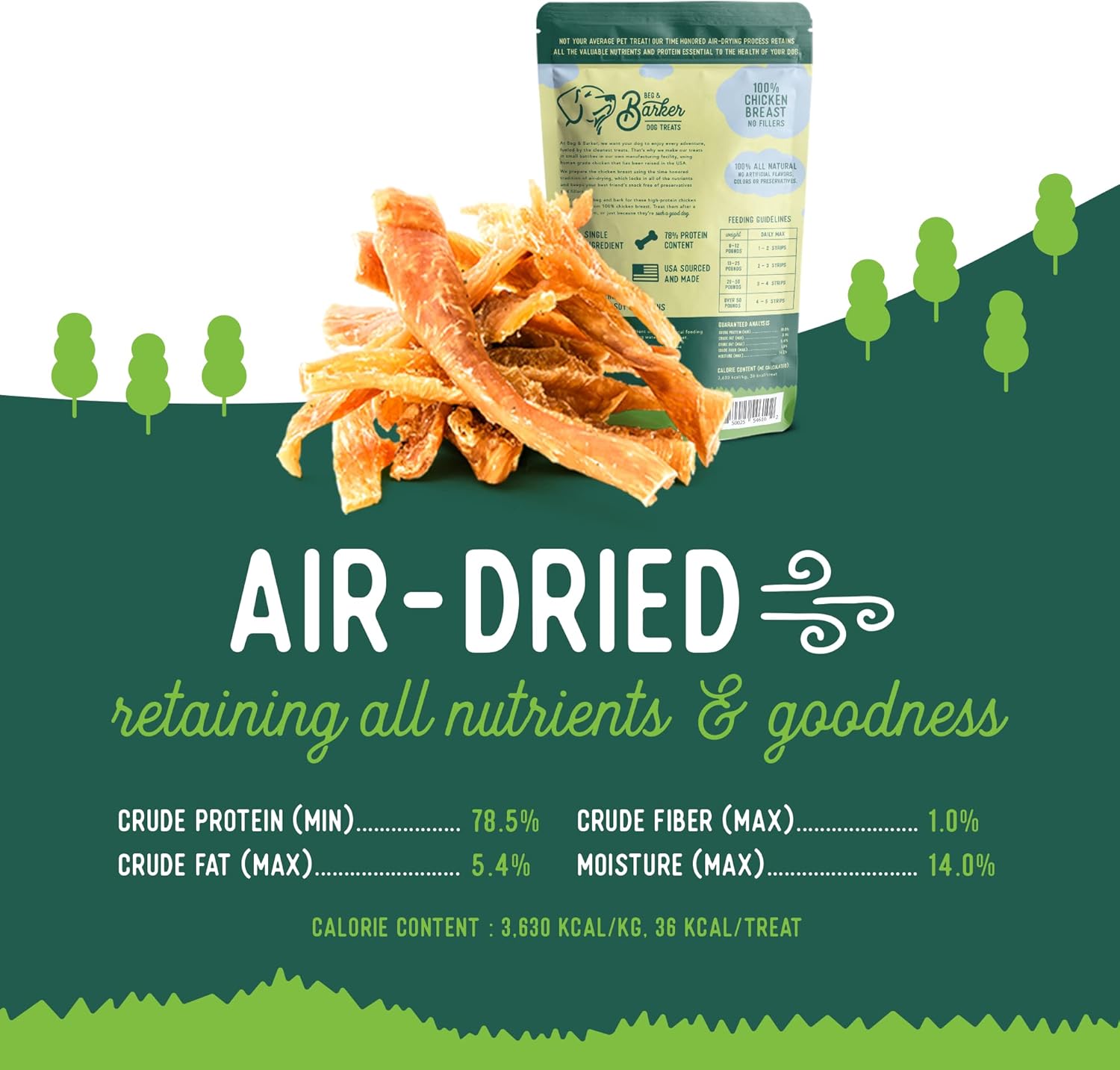 - DELICIOUSLY SIMPLE NATURAL DOG TREATS - Experience the pure essence of our single ingredient dog jerky treats, composed solely of succulent chicken! Your canine companion will devour our slow air-dried chicken strips for dogs. Among dog treats, chicken jerky for dogs reigns supreme in richness, nutritional value, and flavor. Our single ingredient dog treats are sourced from local farms, guaranteeing their wholesome origin! Always free from sugars, grains, and fillers for your best friend!