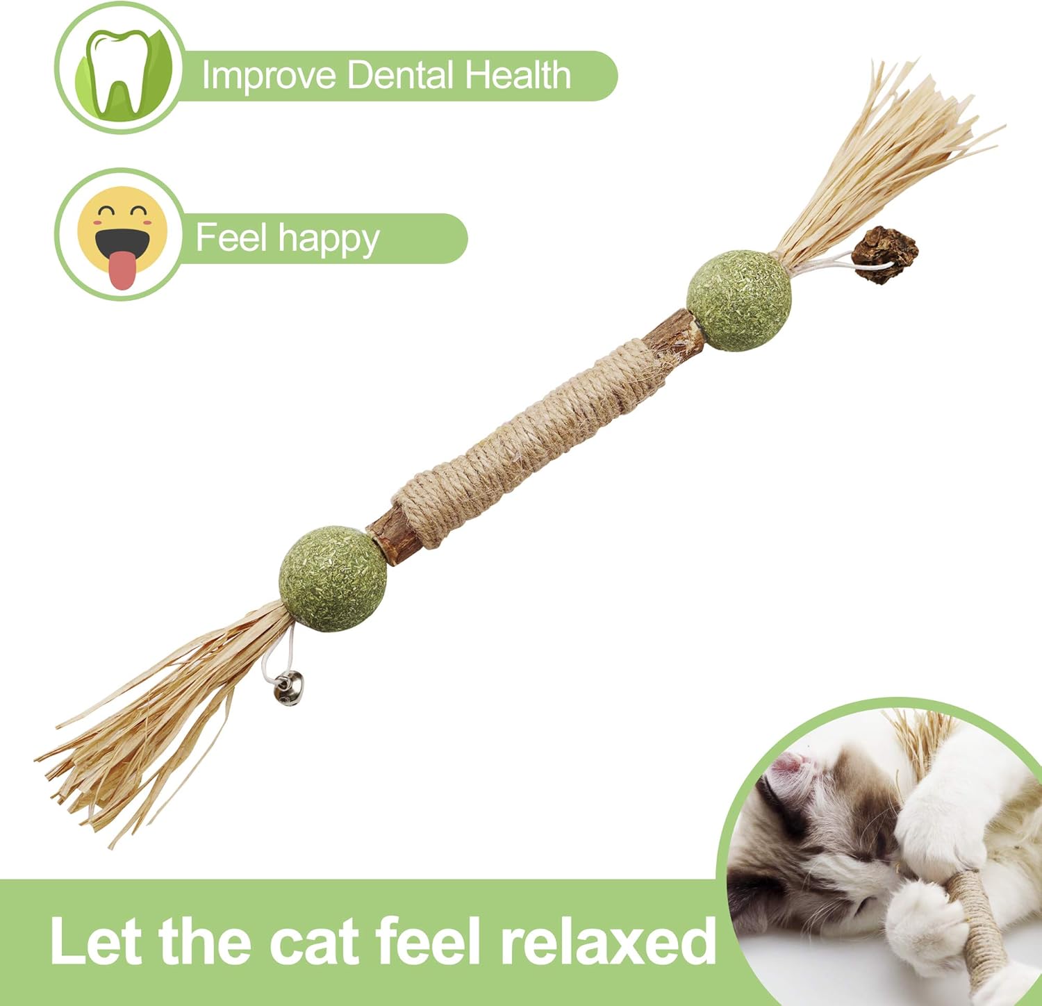 - Silvervine Cat Chew Sticks (Matatabi): Cat teething chew toys are enriched with actinomycin and B-phenylethanol. The scent is very appealing to cats and helps them relieve stress and stay energized and happy. 100% NATURAL: Our Silvervine (Matatabi) Sticks are made from 100% natural silvervine (Matatabi) sticks, raffia fiber, sisal rope and galls (silvervine (Matatabi) fruit) and bells. (Matatabi) fruit) and bells. Feel free to play with them when you give them to your cat, as they are absolutely safe for chewing and biting. This product is made of relatively good materials and other similar products are very different, the quality of the pet to use the assured!