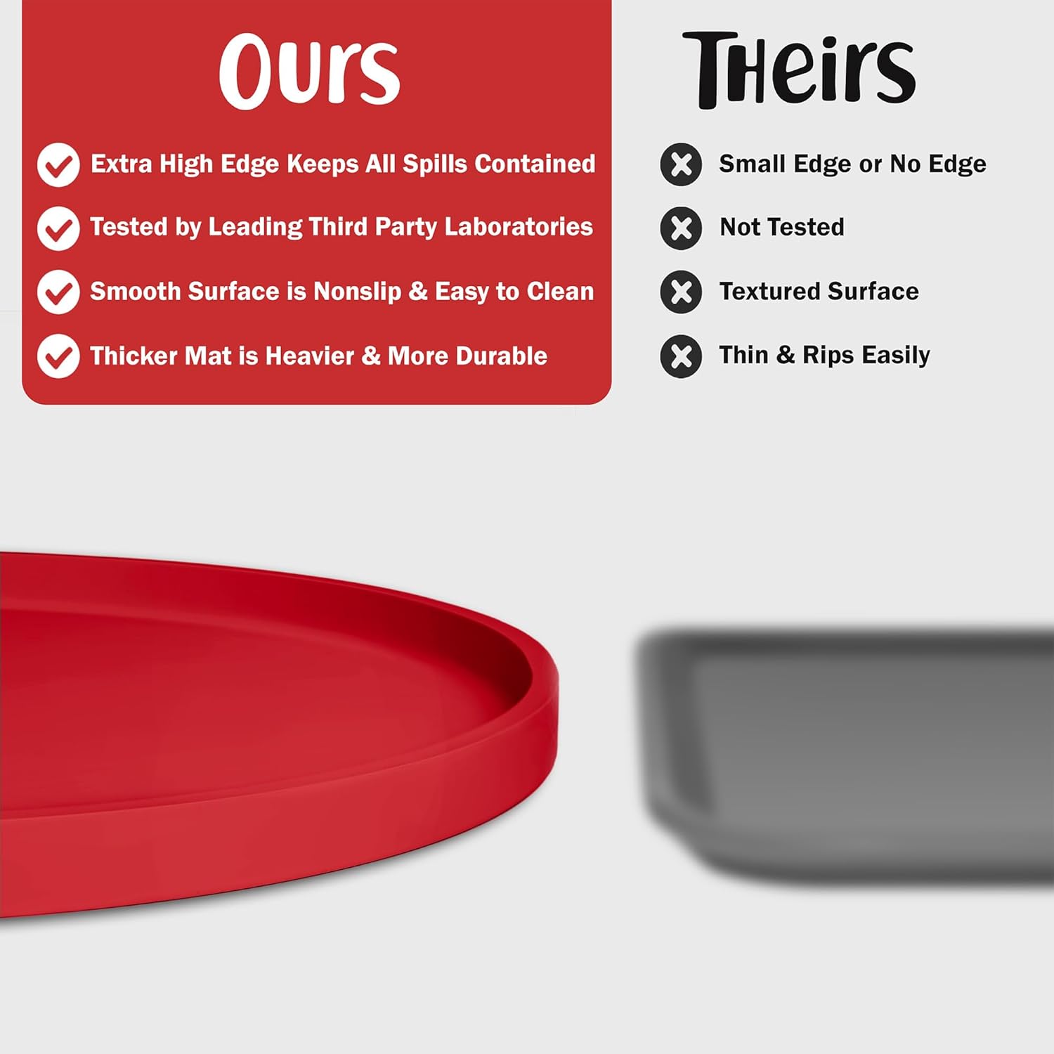 DogBuddy Dog Food Mat - Waterproof Dog Bowl Mat, Silicone Pet Mat for Food and Water Bowls, Nonslip Pet Feeding Mat with Edges, Dogs Food Mats for Floors, Puppy Supplies (Large, Red)