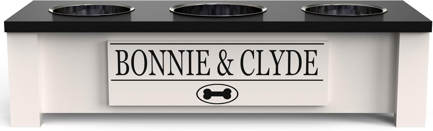 GrooveThis Woodshop - Personalized Elevated Triple Dog Bowl Stand for Large, Medium, Small, X-Small Dogs - 3 Stainless Steel Food and Water Bowls - Raised Dog Dish with Internal Storage (Small, Black)