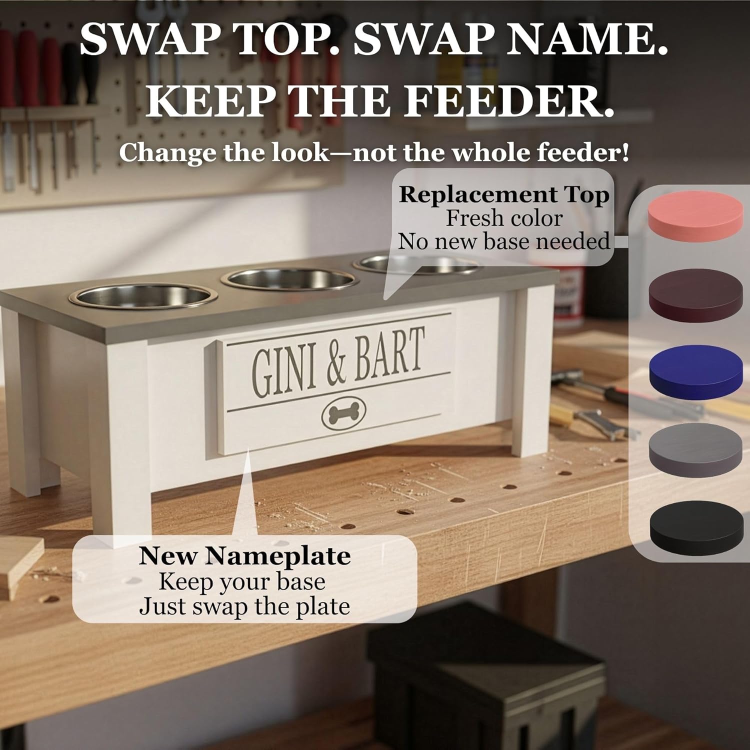 - đź’¦ Pet-Safe, Water Resistant Design đź’¦ The top surface and internal storage space of this custom dog bowl stand are treated with pet-safe, water-resistant polyurethane.