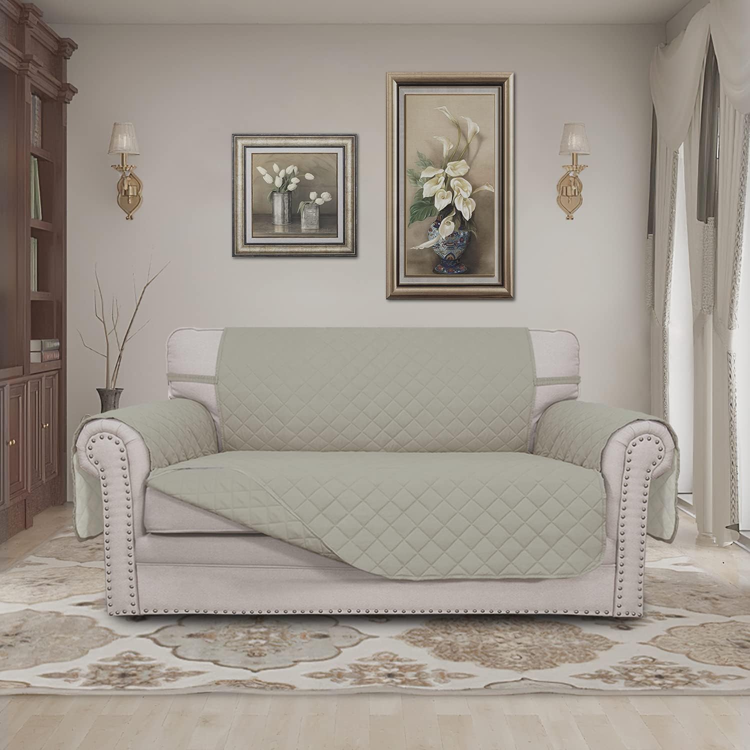 Easy-Going Reversible Loveseat Couch Cover for 2 Cushion Couch Sofa Cover for Dogs Water Resistant Furniture Protector with Foam Sticks Elastic Straps for Pet (Loveseat, Beige/Beige)