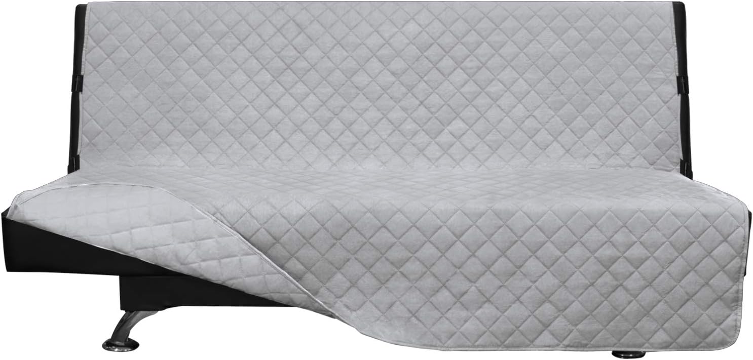 Easy-Going Futon Sofa Slipcover - Reversible Armless Couch Cover - Water Resistant for Pets & Kids (Light Gray/Light Gray)