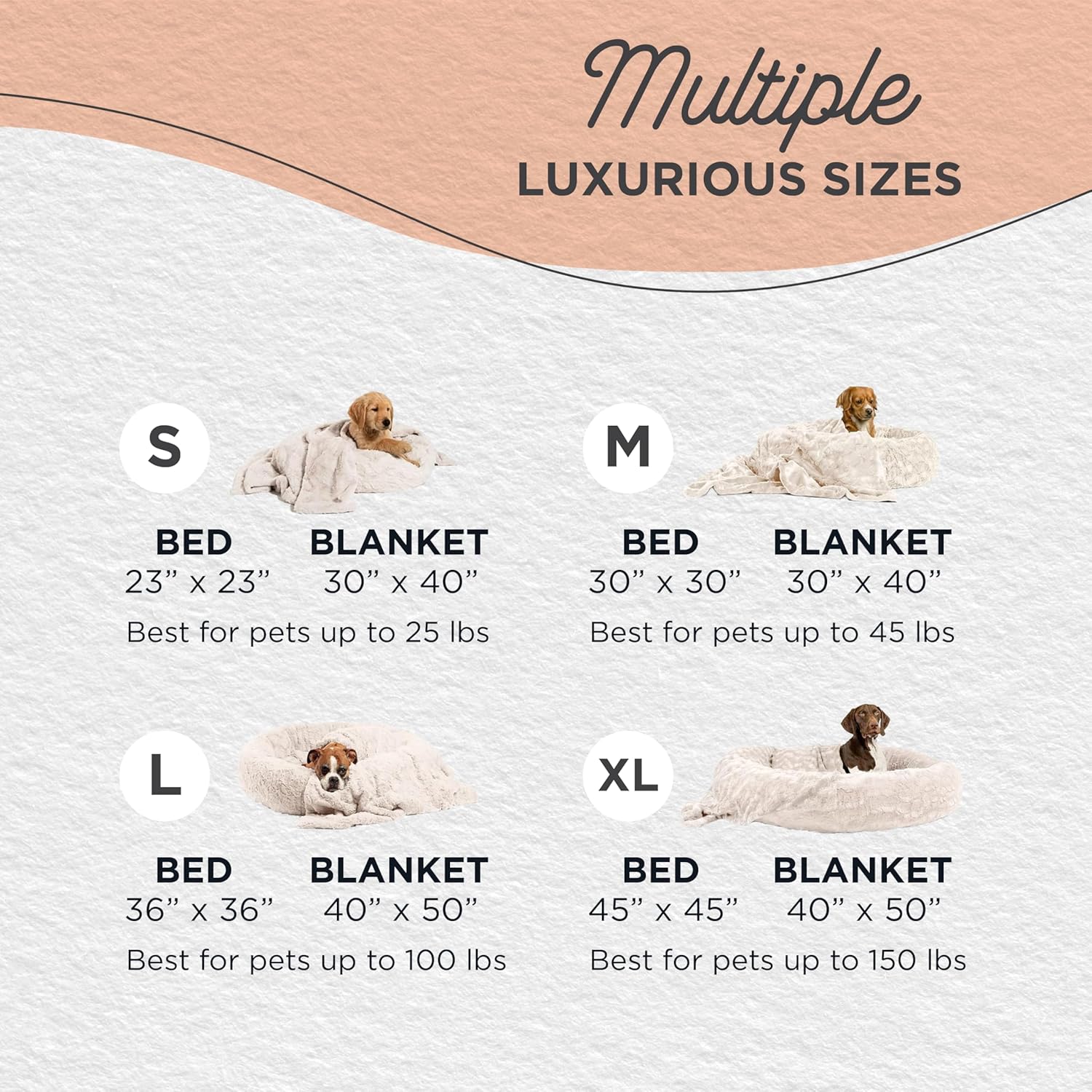 Best Friends by Sheri Bundle Set The Original Calming Lux Donut Cuddler Cat and Dog Bed + Pet Throw Blanket, Oyster, Extra Large, 45x45