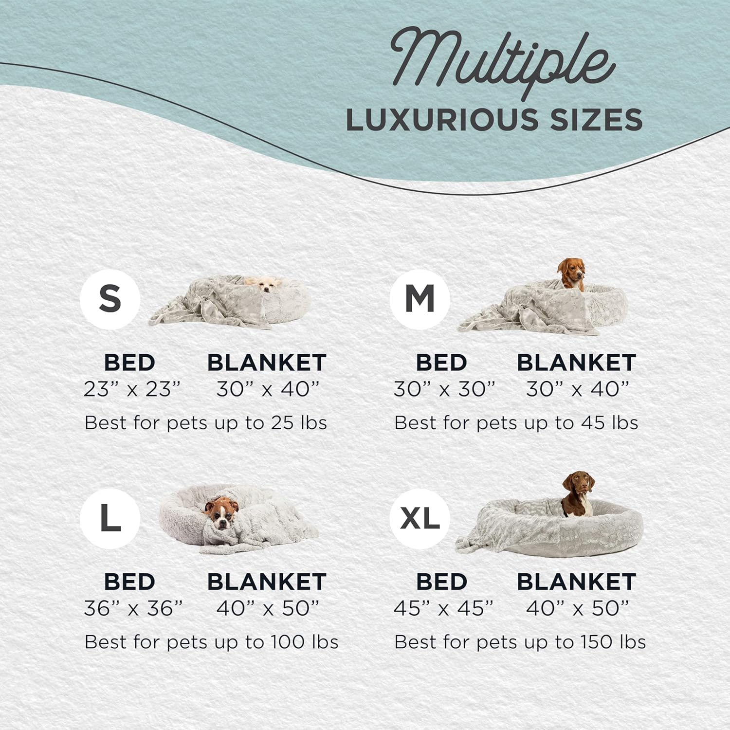 Best Friends by Sheri Bundle Set The Original Calming Lux Donut Cuddler Cat and Dog Bed + Pet Throw Blanket, Gray, Extra Large, 45x45