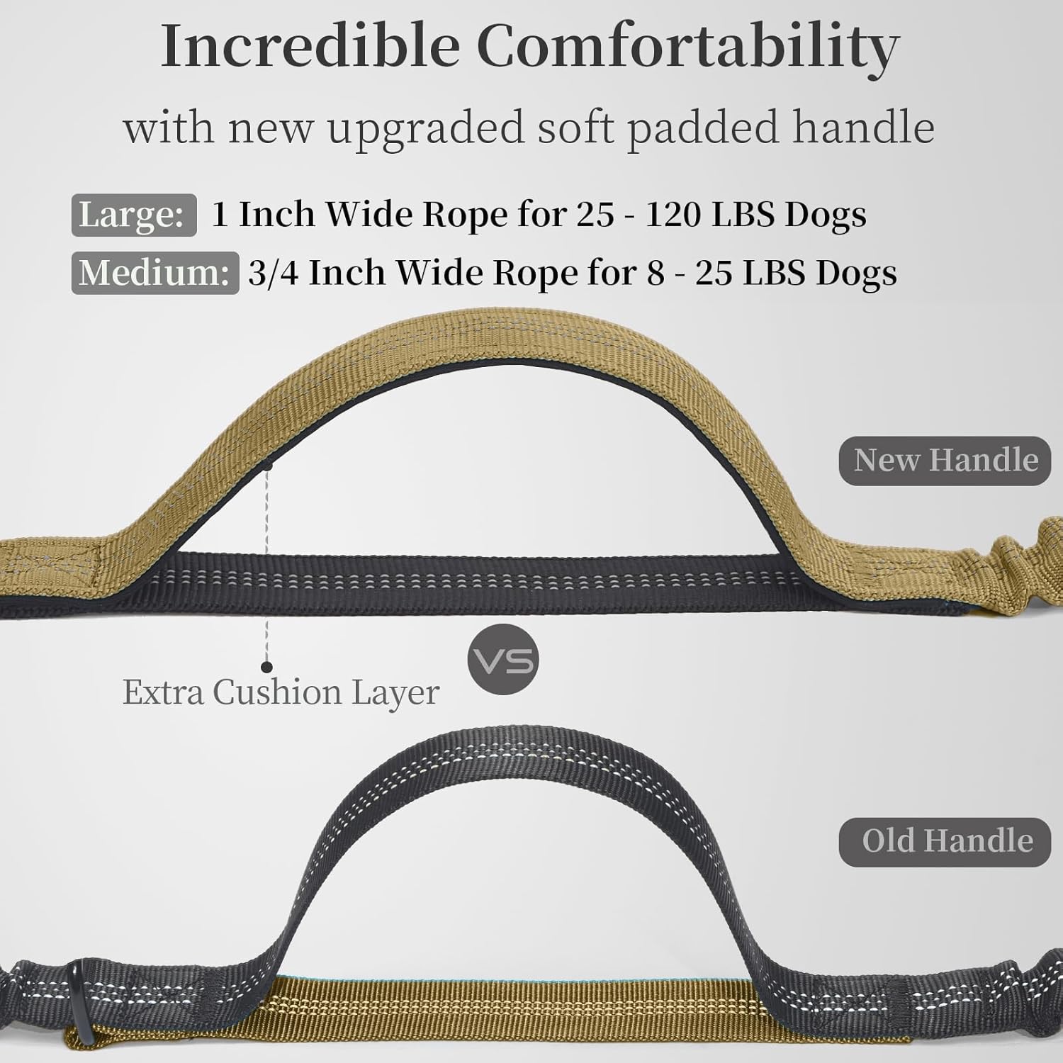 iYoShop Hands Free Dog Leash with Zipper Pouch, Dual Padded Handles and Durable Bungee for Walking, Jogging and Running Your Dog (Large, 25-120 lbs, Khaki)